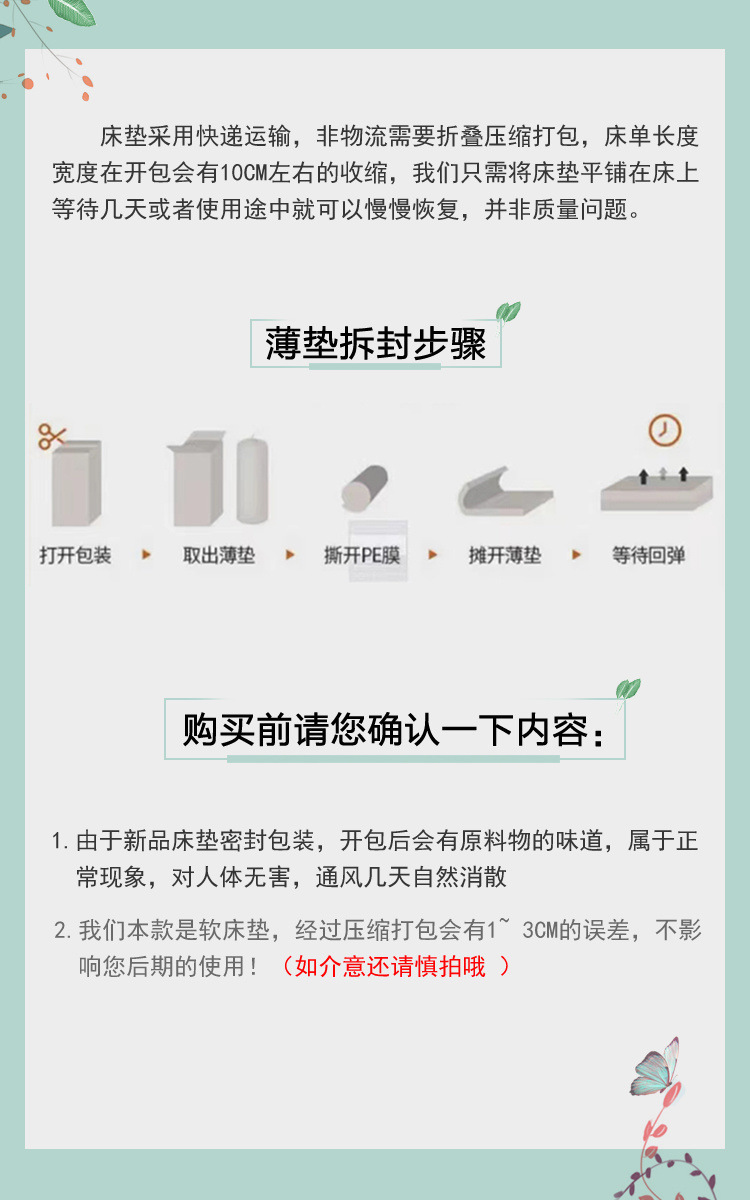 매트리스 두꺼운 부드러운 쿠션 가정용 수면 매트 1.5 학생 기숙사 싱글 1.2m 이불 더블 1.8스토어 가기