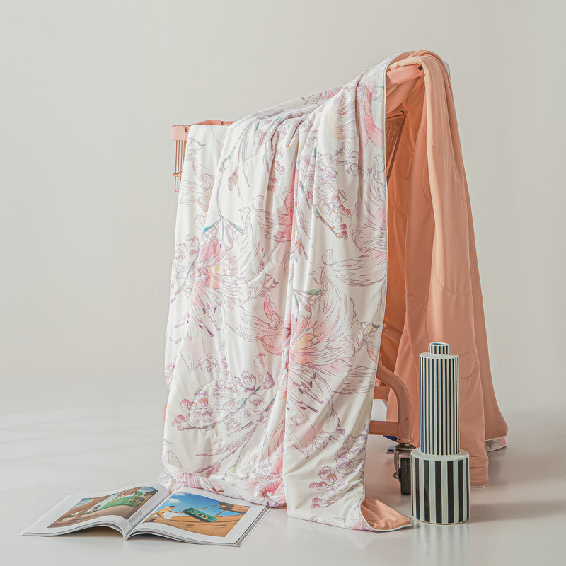 클래스 A 여름 운모 실크 여름 이불 가벼운 고급 인쇄 이불 시원하고 부드러운 에어컨 얼음 실크 시원한 이불 코어 알몸 수면 얇은 이불 4