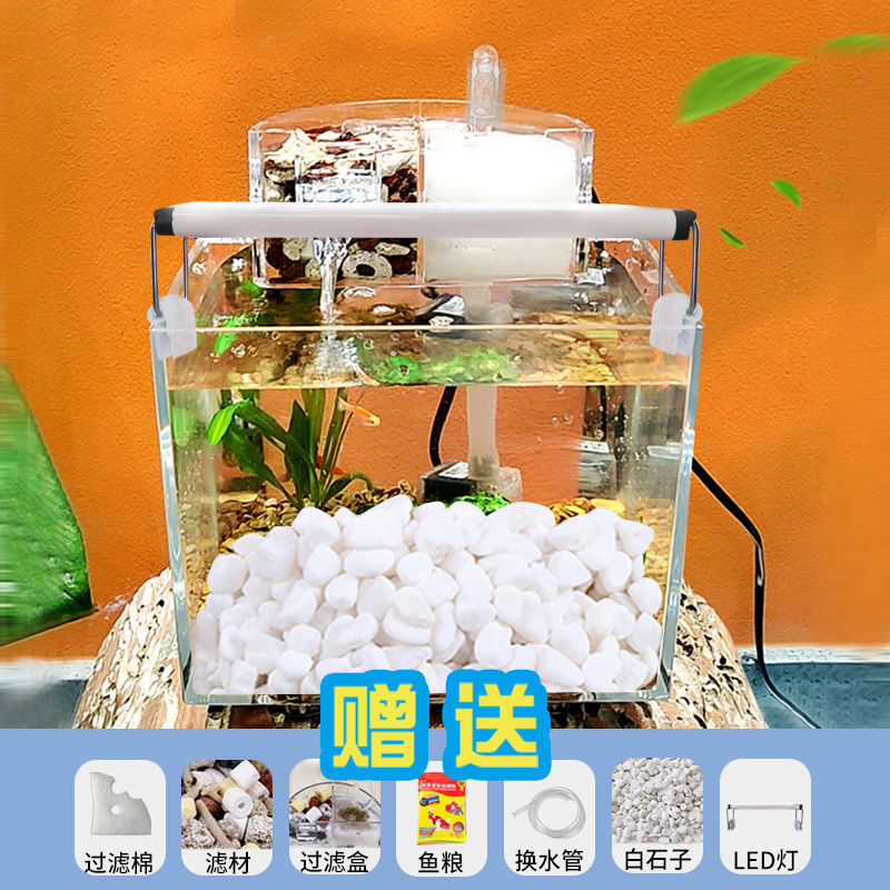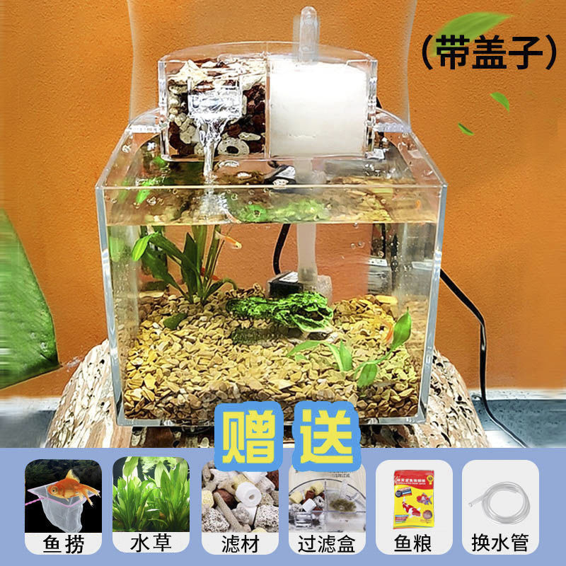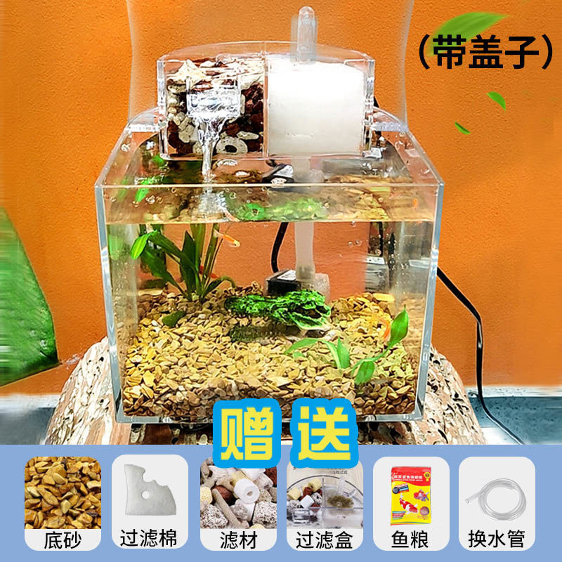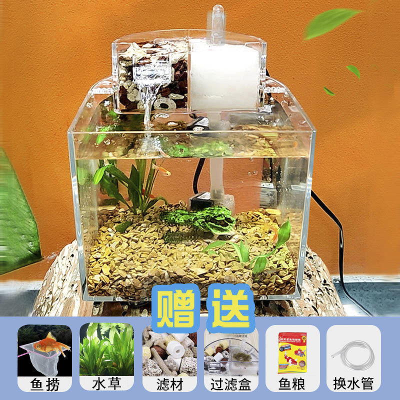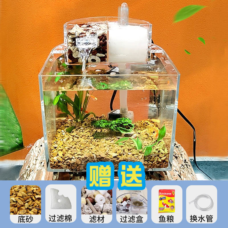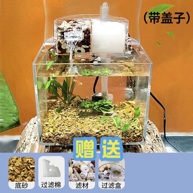 물 교환 없이 작은 생태 수조, 거실 데스크탑, 가정용 미니 필터링 및 조경 플라스틱 수조, 사무실 배송스토어 가기