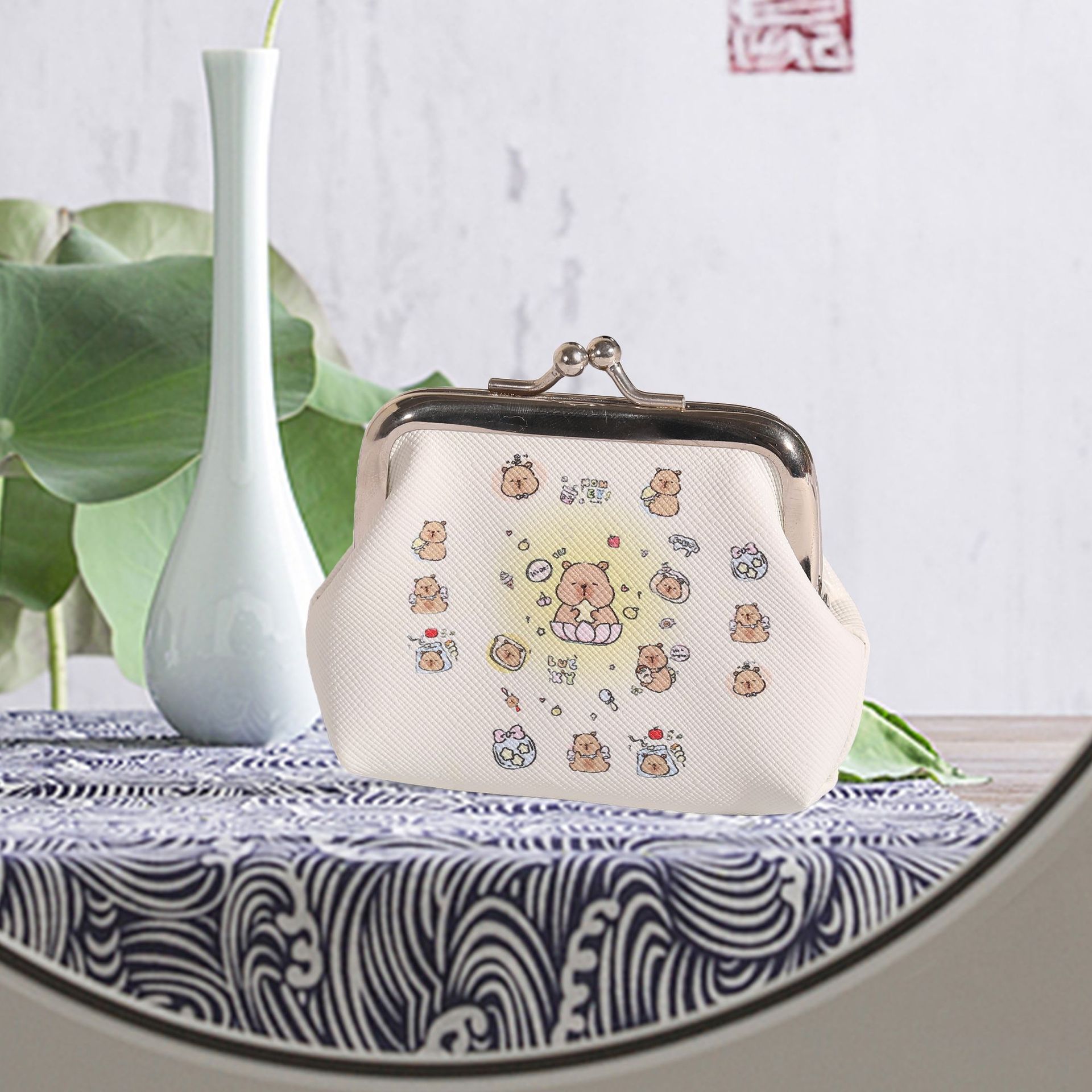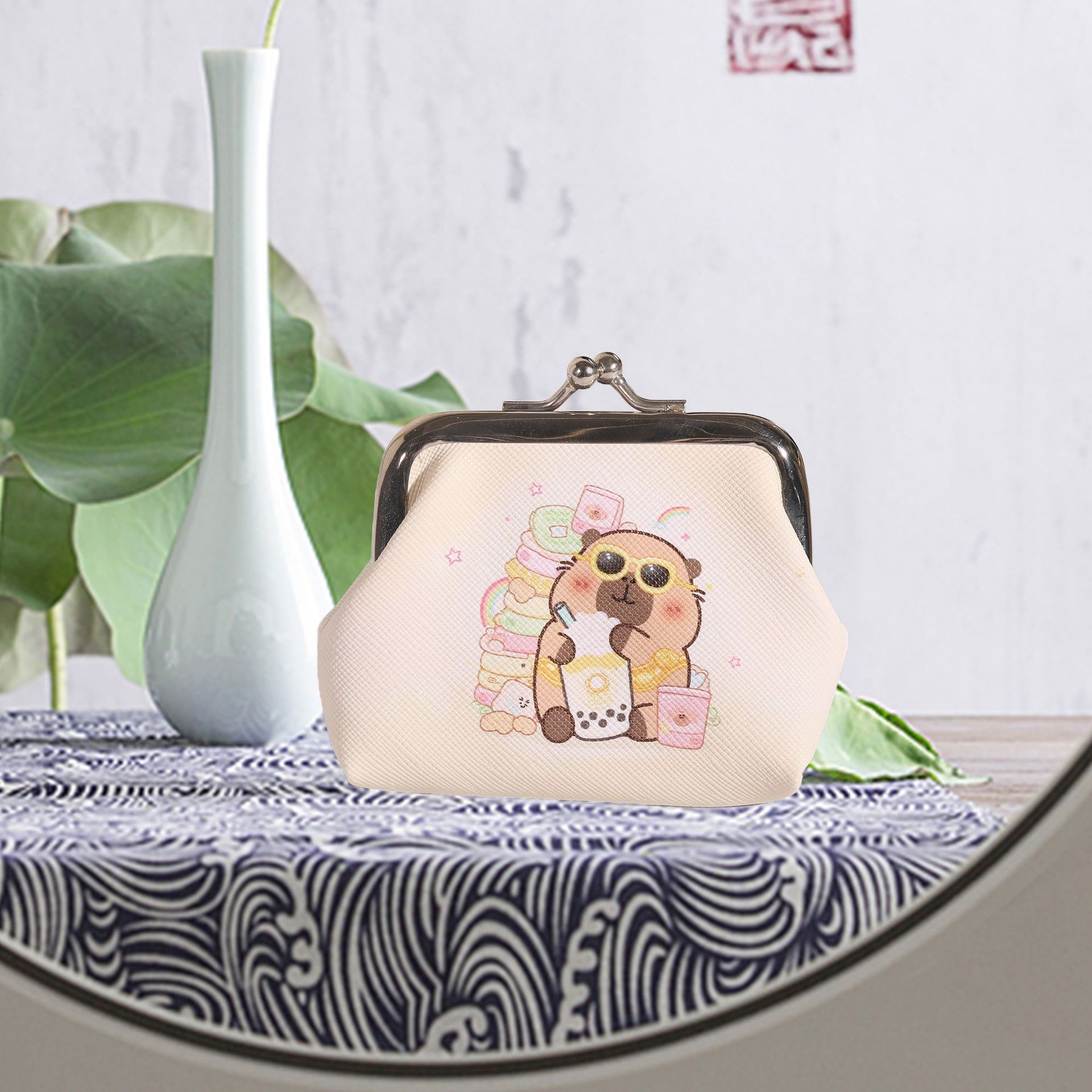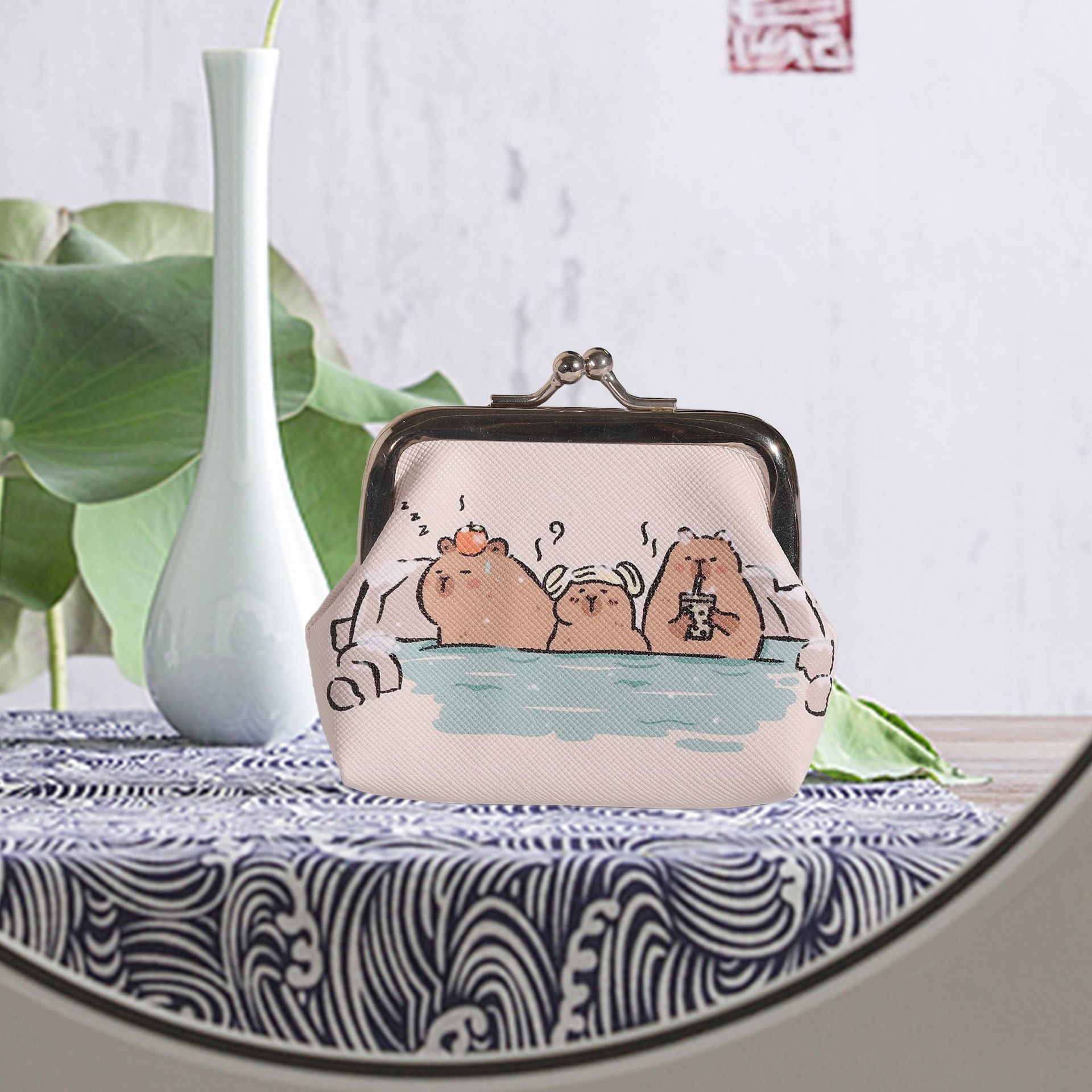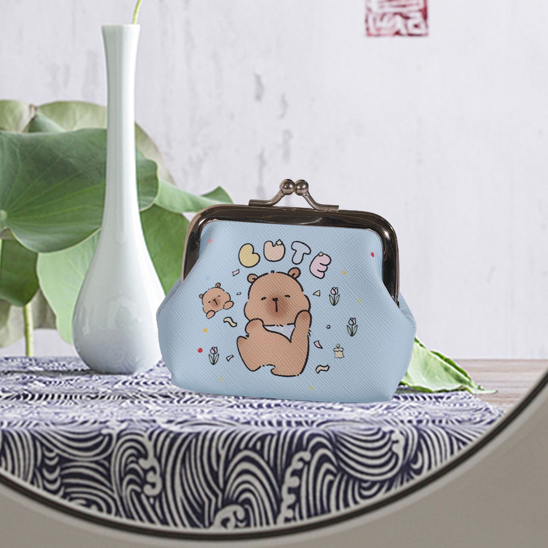 귀여운 미니 동전 지갑 카피바라 버클 동전 이어폰 키 가방 동전 가방 방수 및 휴대용
