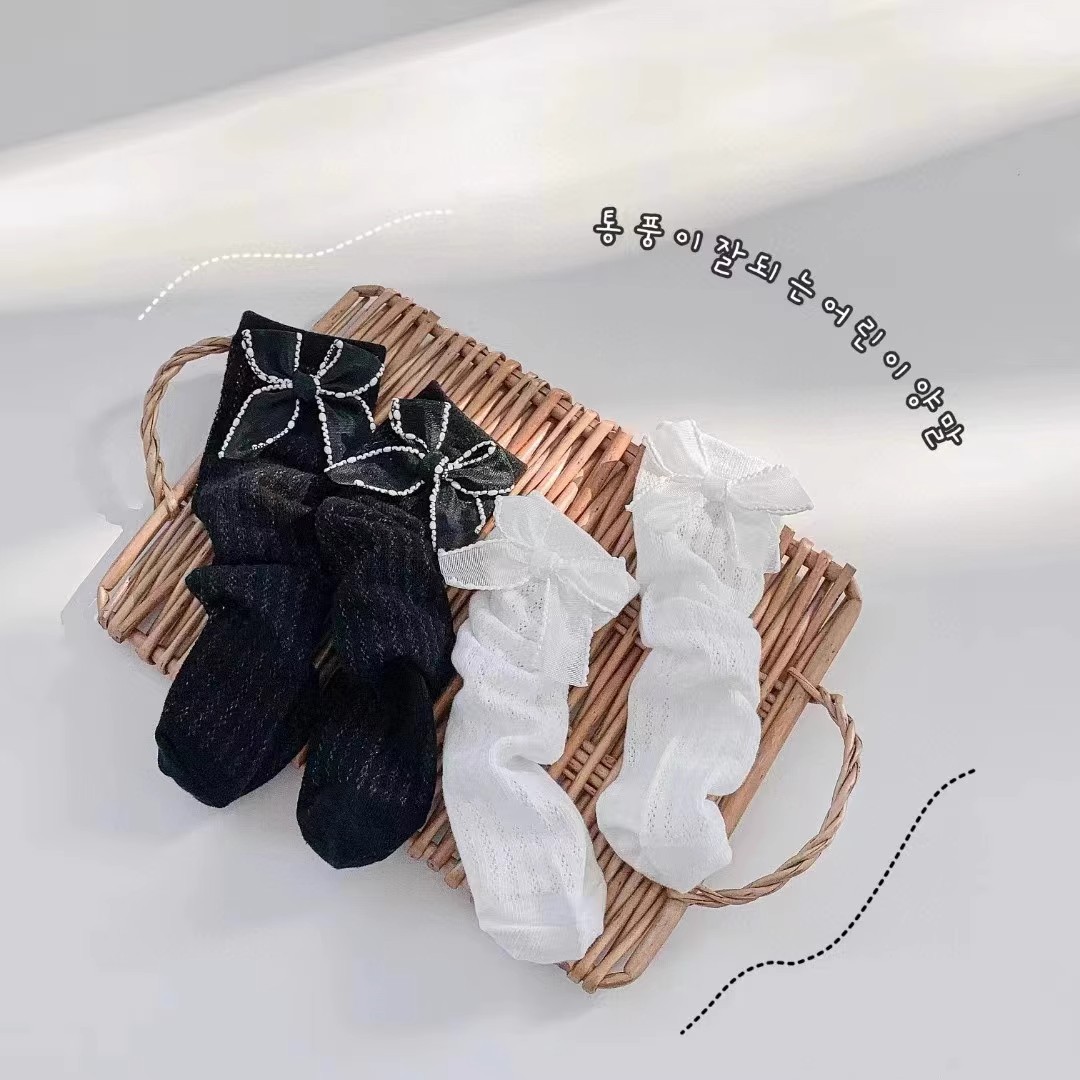 • 송아지 양말 리본-화이트 1켤레