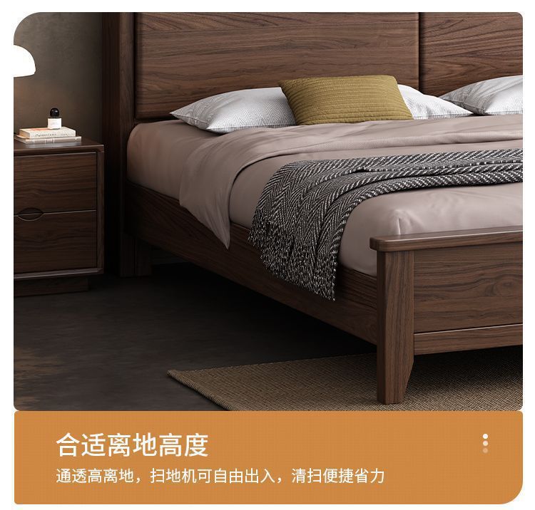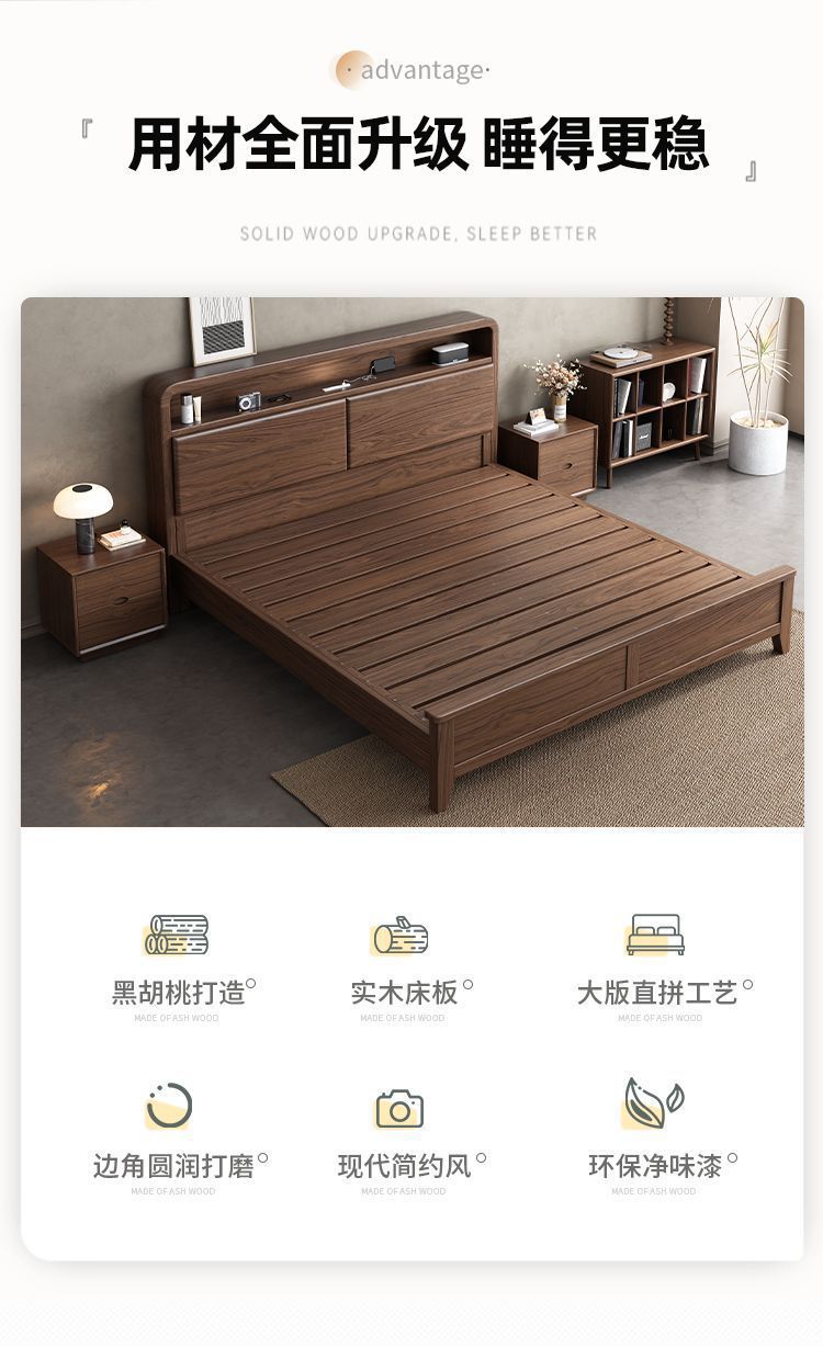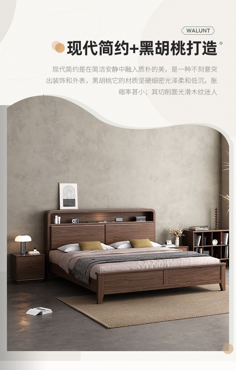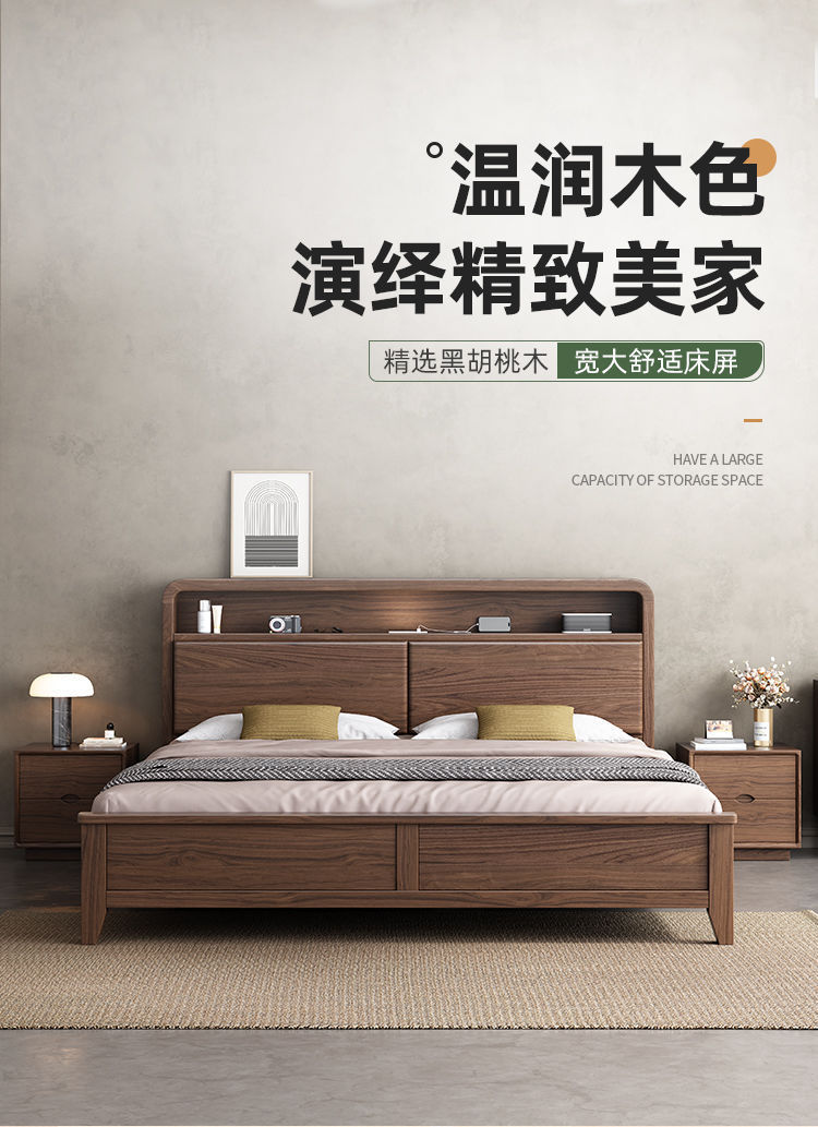 블랙 호두 1.8 m 라이트 럭셔리 미니멀리스트 더블 웨딩 침대 1.5 m 새로운 홈 침실 솔리드 우드 침대 나이트 라이트스토어 가기