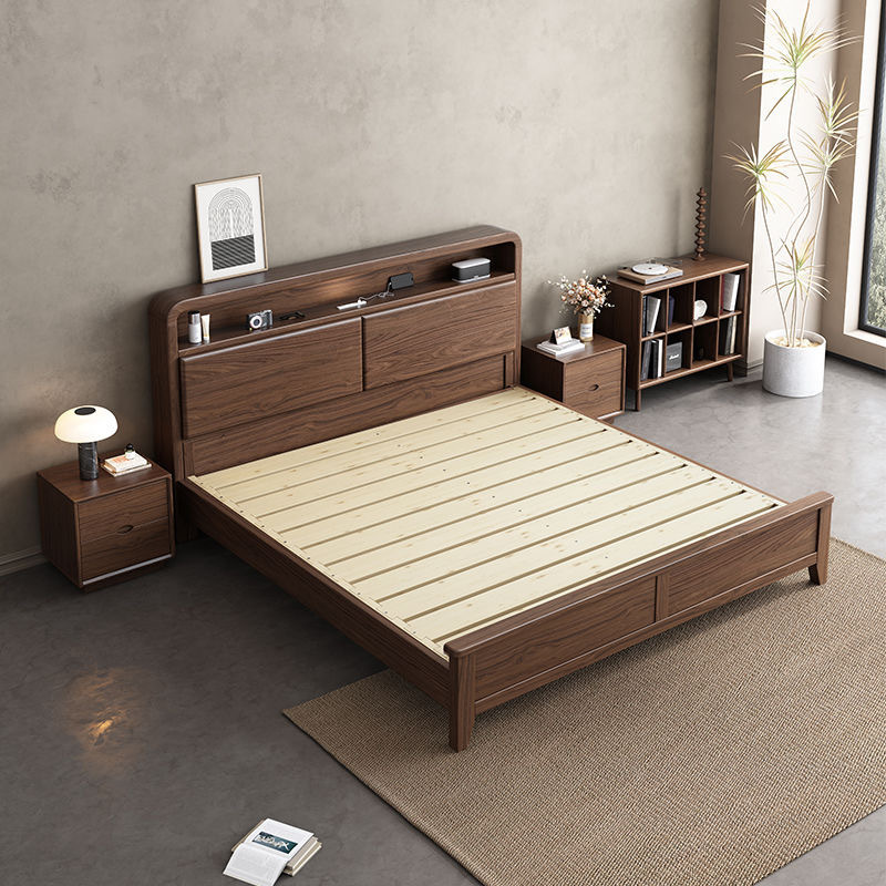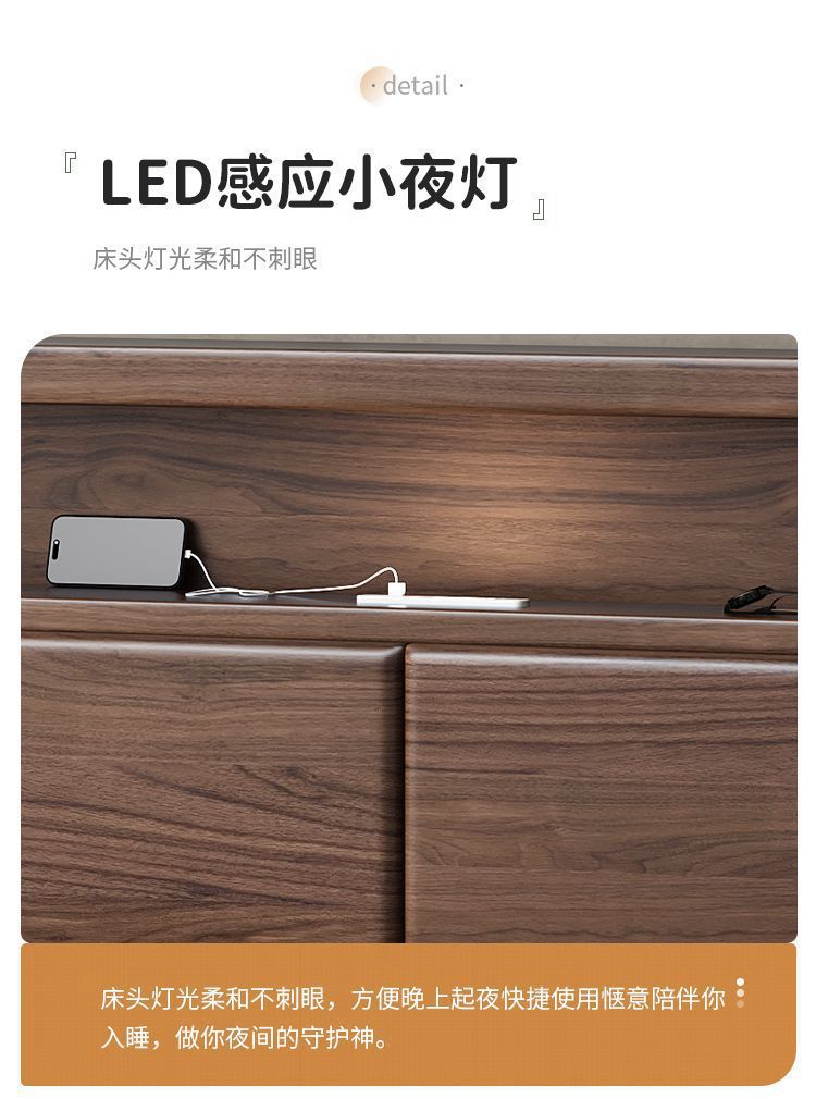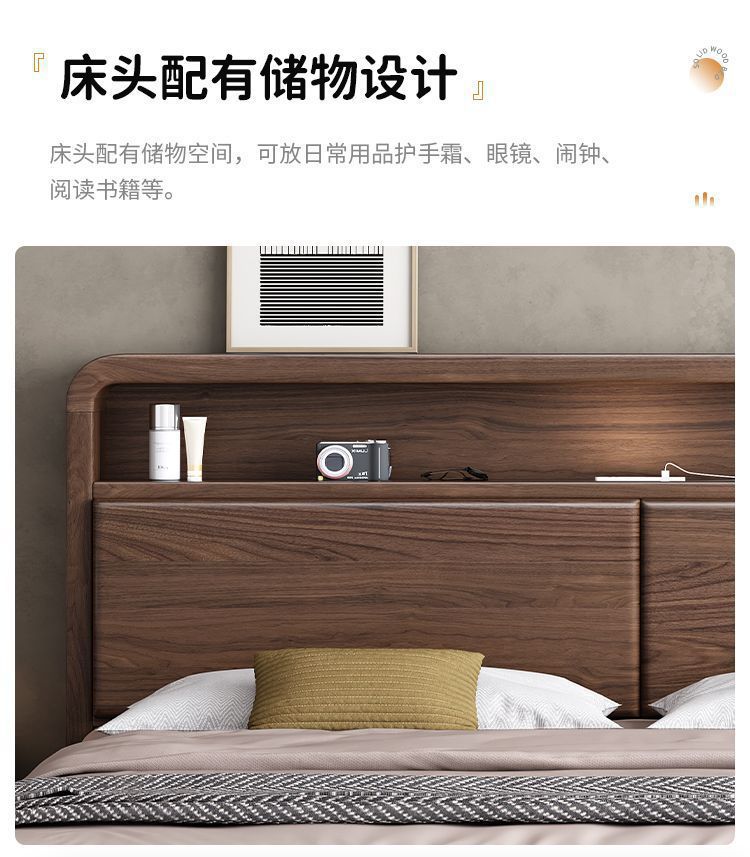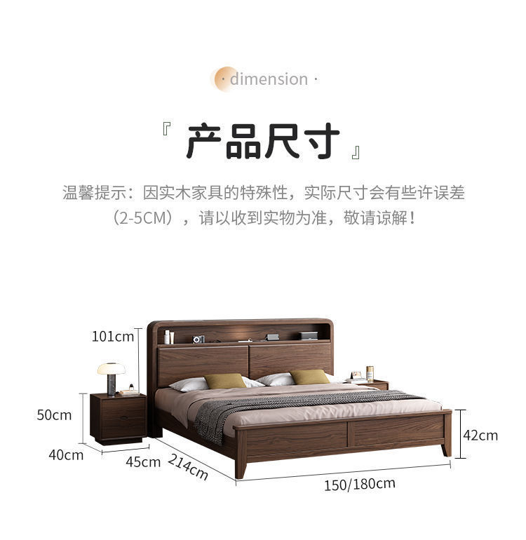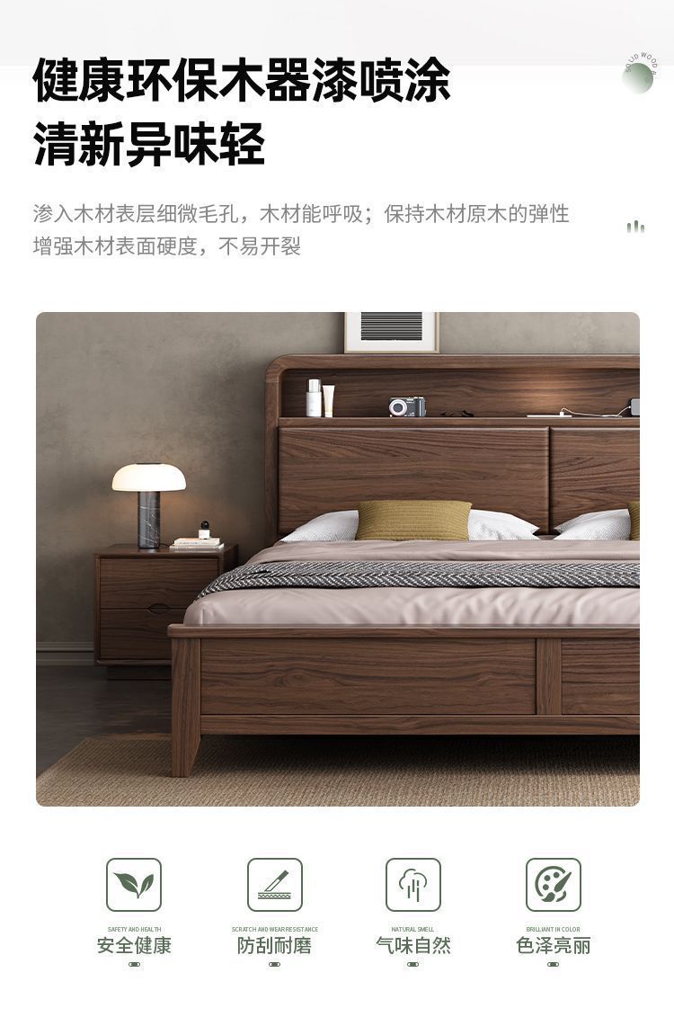 블랙 호두 1.8 m 라이트 럭셔리 미니멀리스트 더블 웨딩 침대 1.5 m 새로운 홈 침실 솔리드 우드 침대 나이트 라이트스토어 가기
