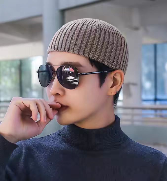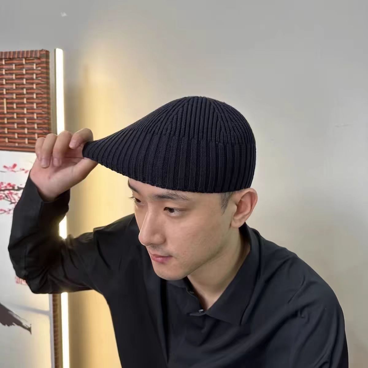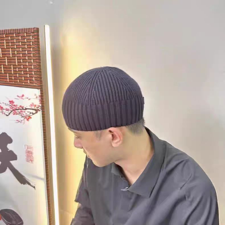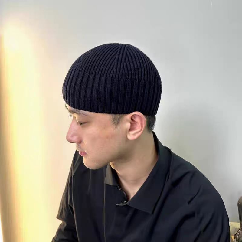 짧은 모직 모자, 오리지널 탑 니트 남성용 두꺼운 가을 겨울 대머리 모자, 헬멧 착용 가능한 농가 모자, 대외 무역 멜론 스킨 모자스토어 가기