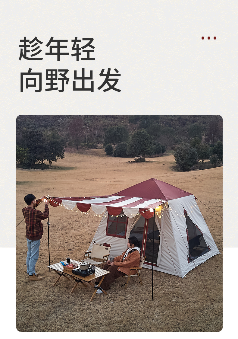 • 자외선 차단 캠핑 야간 모델 [휴대용 테이블과 의자, 2인용 자동 에어매트리스] 초대형 공간