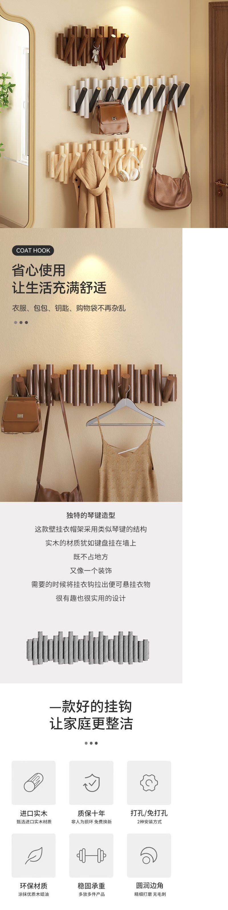 단단한 나무 피아노 건반 옷걸이, 구멍이 없는 옷걸이, 코트 걸이, 현관 옷걸이, 현관 옷걸이스토어 가기