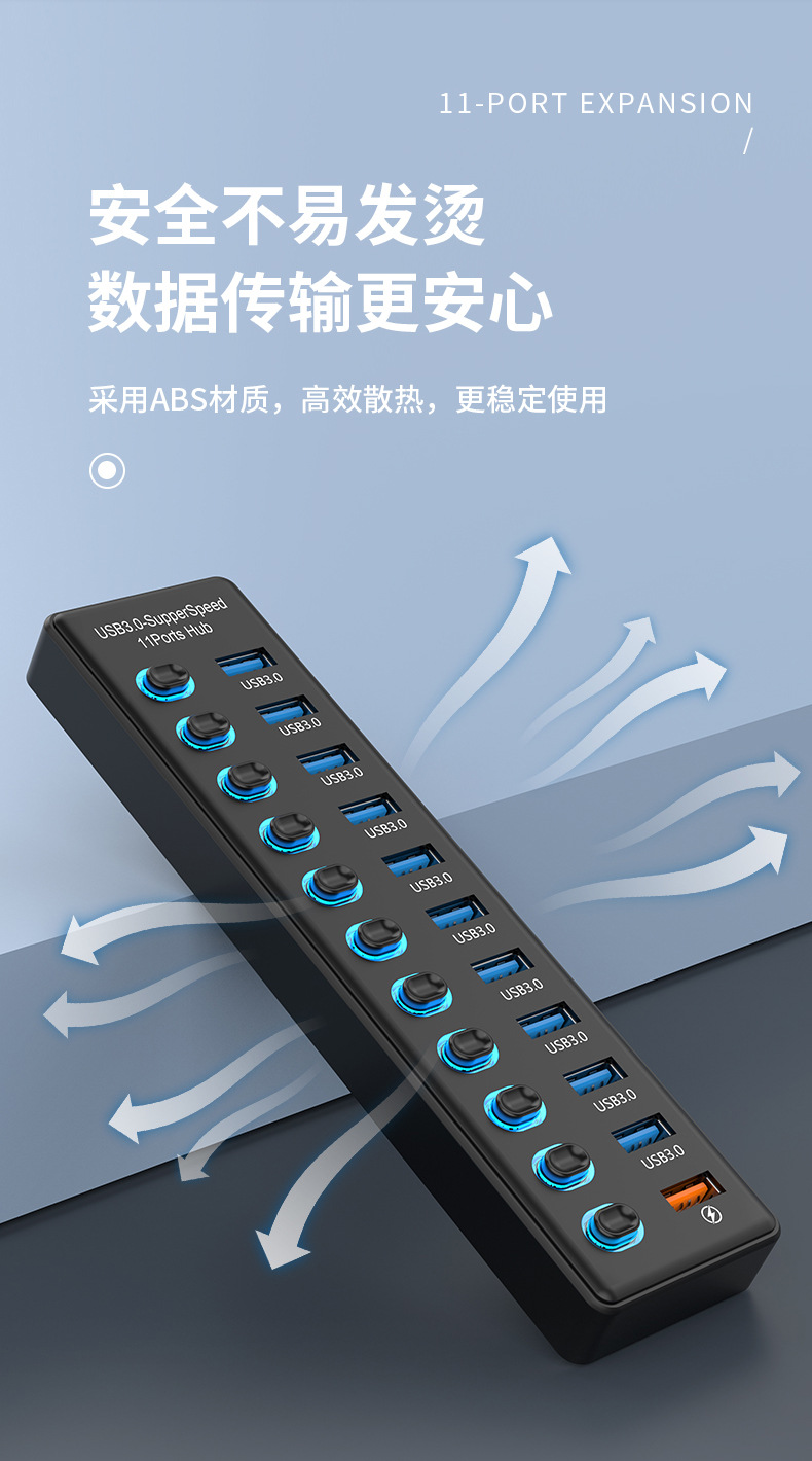 • 10포트 USB3.0HUB 0.3m 케이블(12V3A 전원 공급 장치 포함)