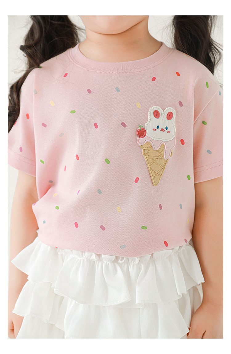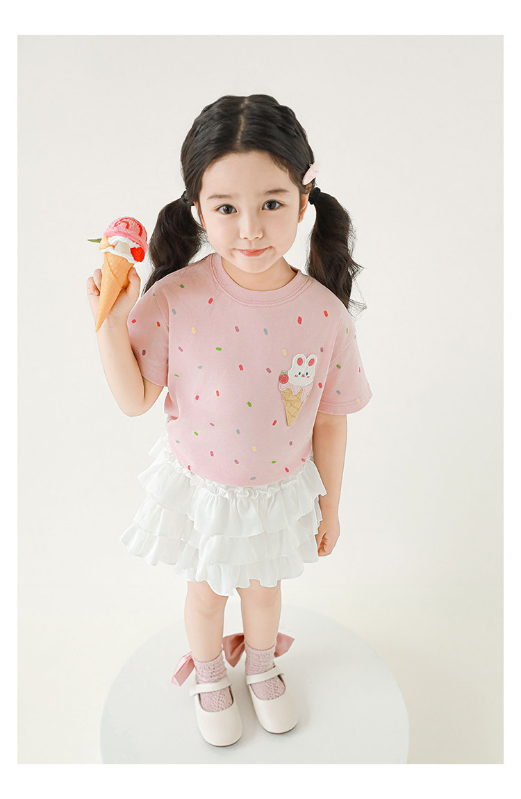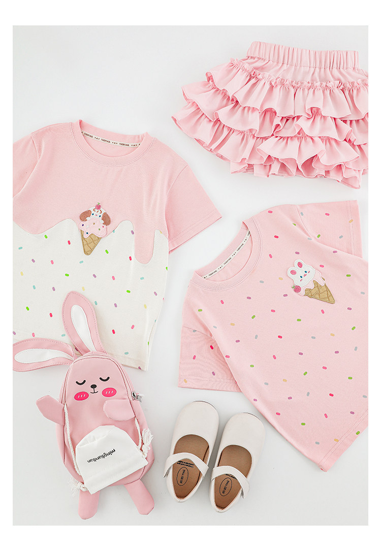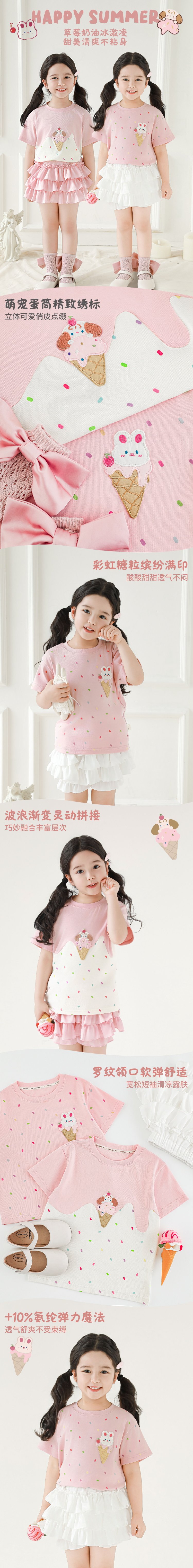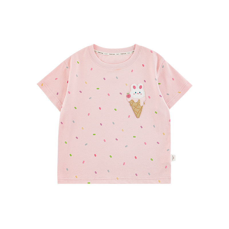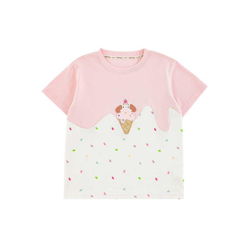 Wuri Bub Girl's Ice Cream 반팔 티셔츠 여름 장난스러운 귀여운 레인보우 풀 프린트 립 목선 탑 트렌디스토어 가기