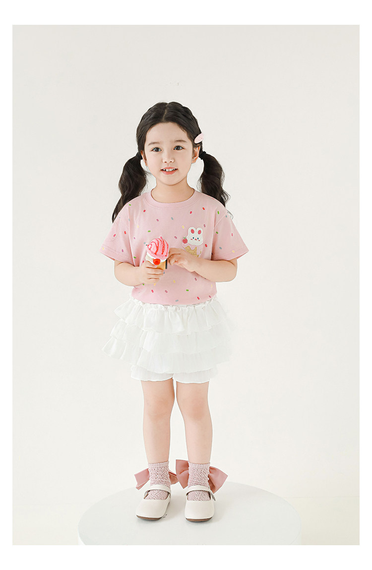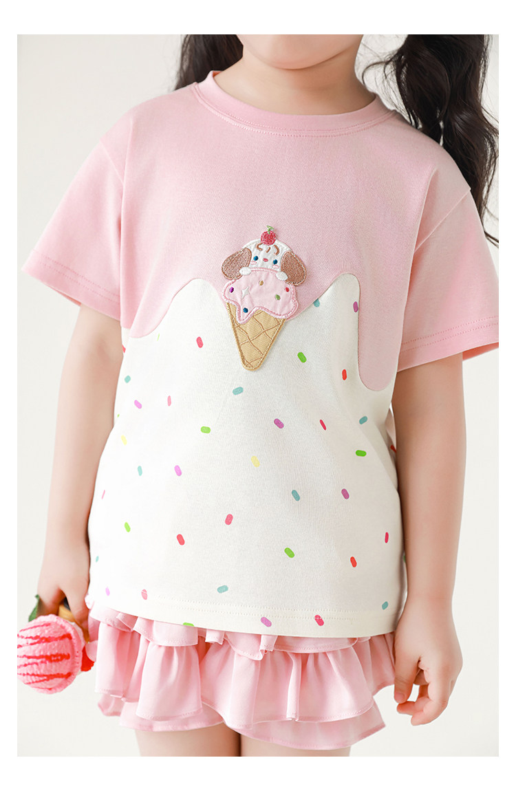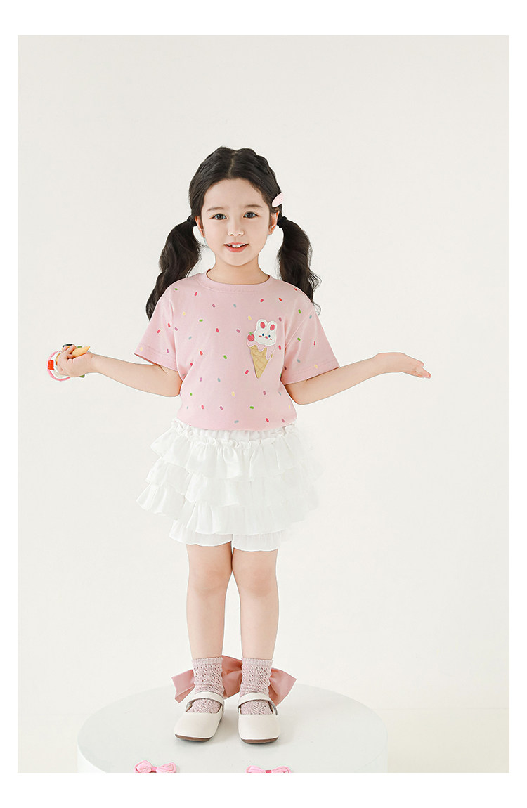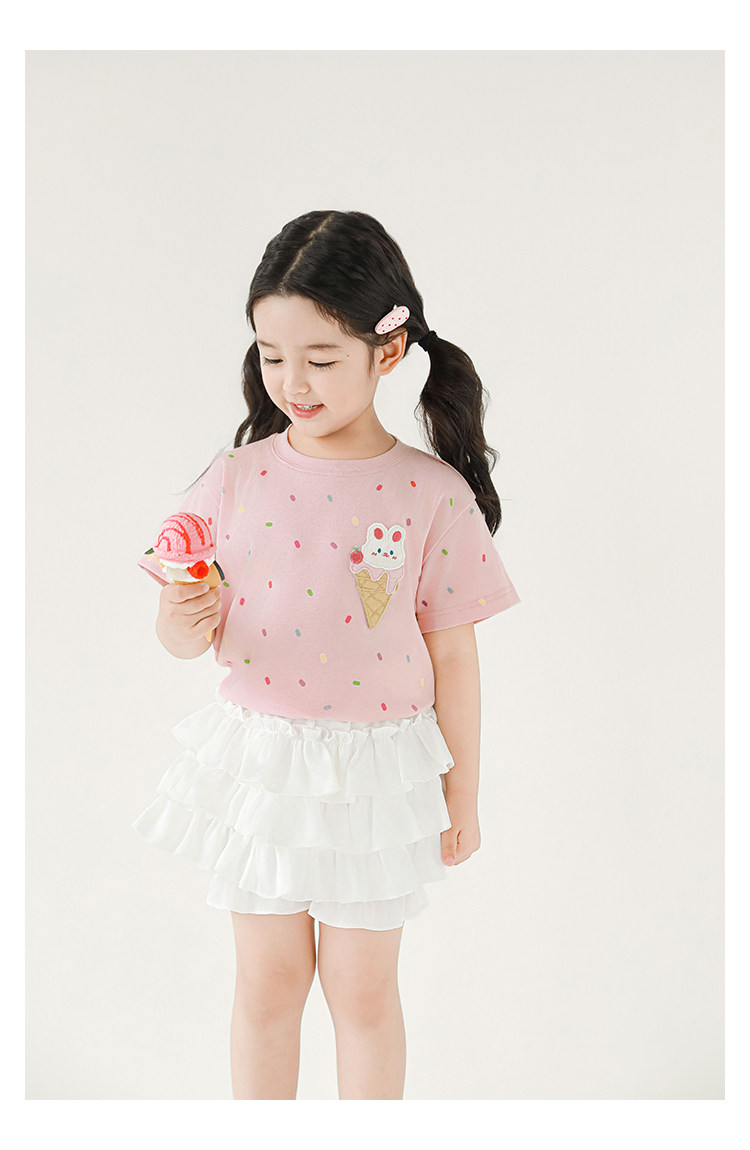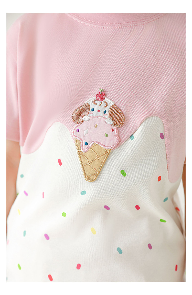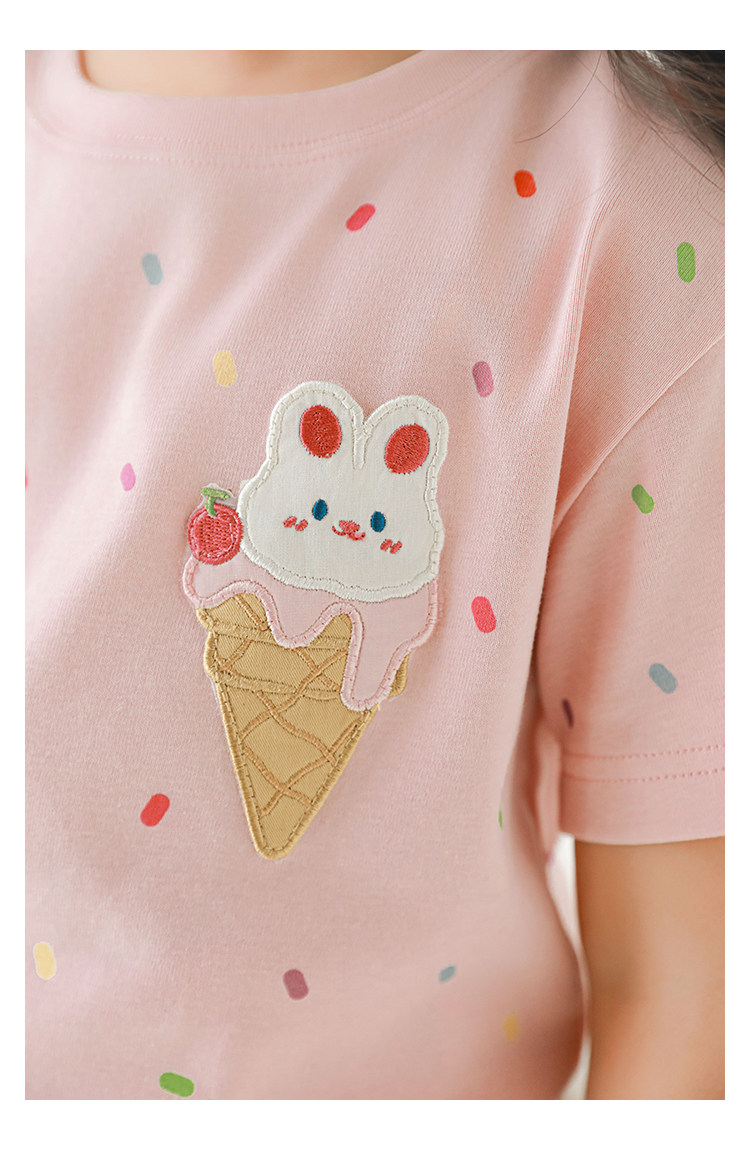 Wuri Bub Girl's Ice Cream 반팔 티셔츠 여름 장난스러운 귀여운 레인보우 풀 프린트 립 목선 탑 트렌디스토어 가기