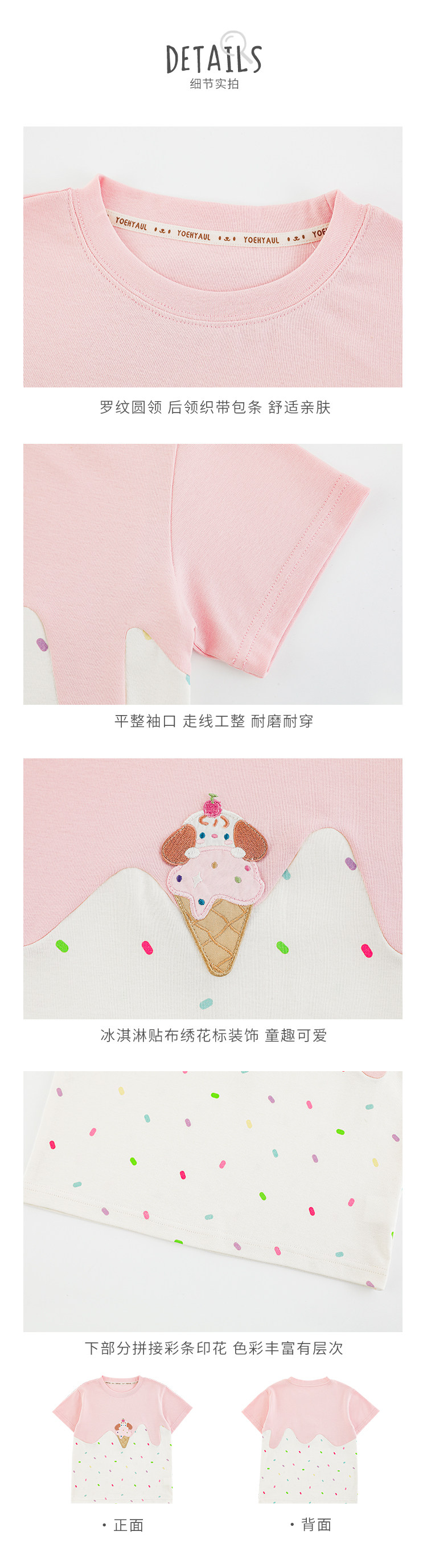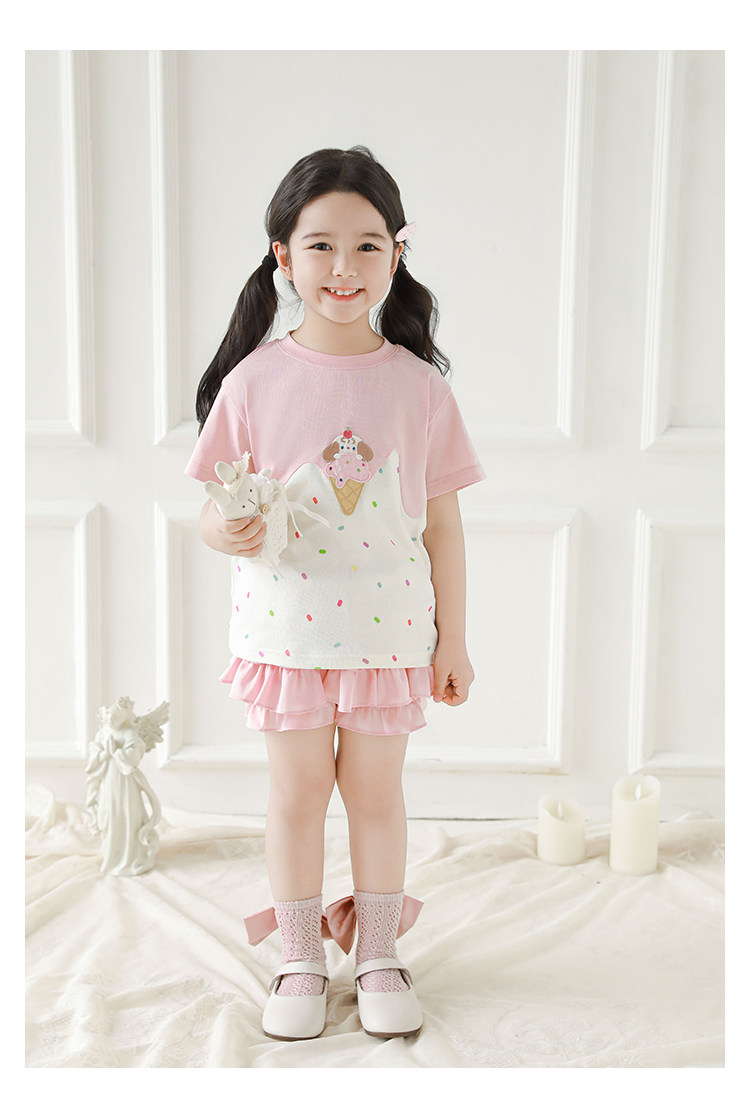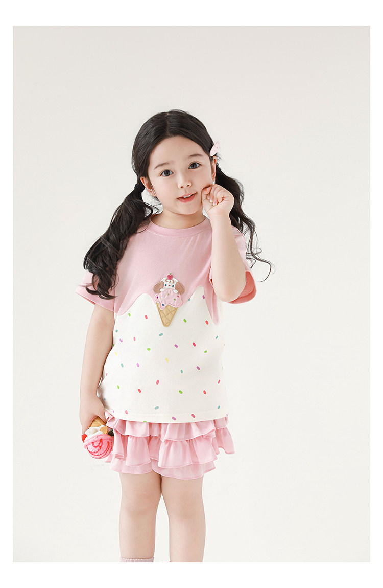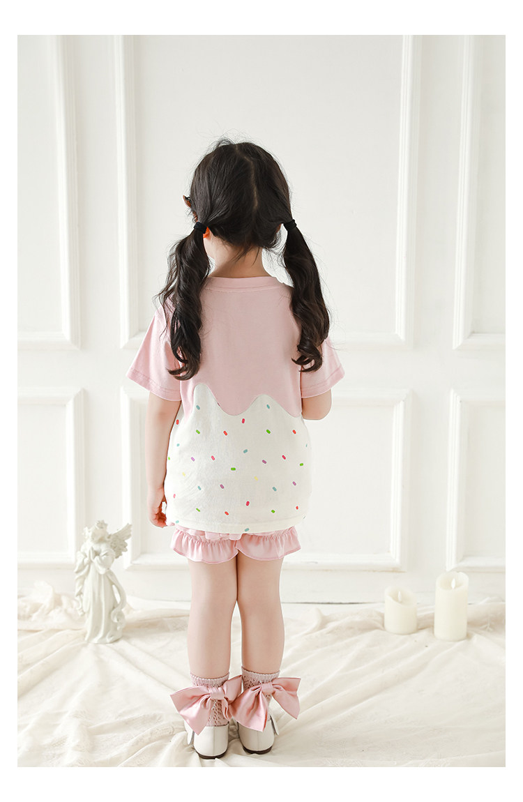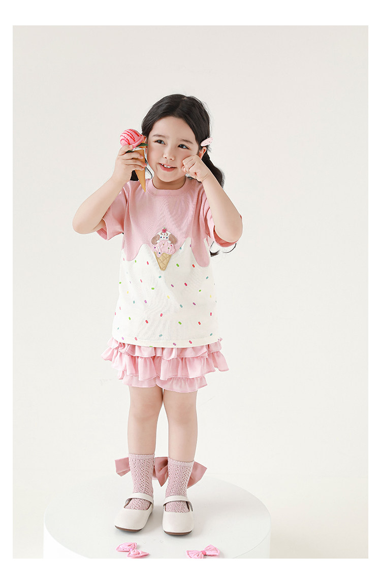 Wuri Bub Girl's Ice Cream 반팔 티셔츠 여름 장난스러운 귀여운 레인보우 풀 프린트 립 목선 탑 트렌디스토어 가기