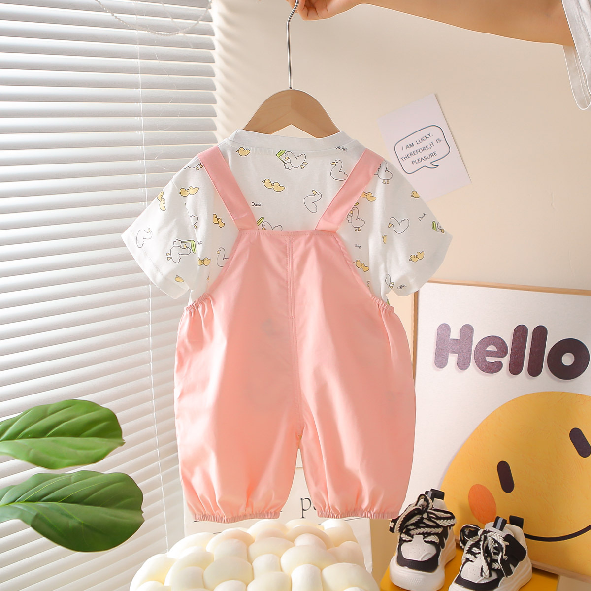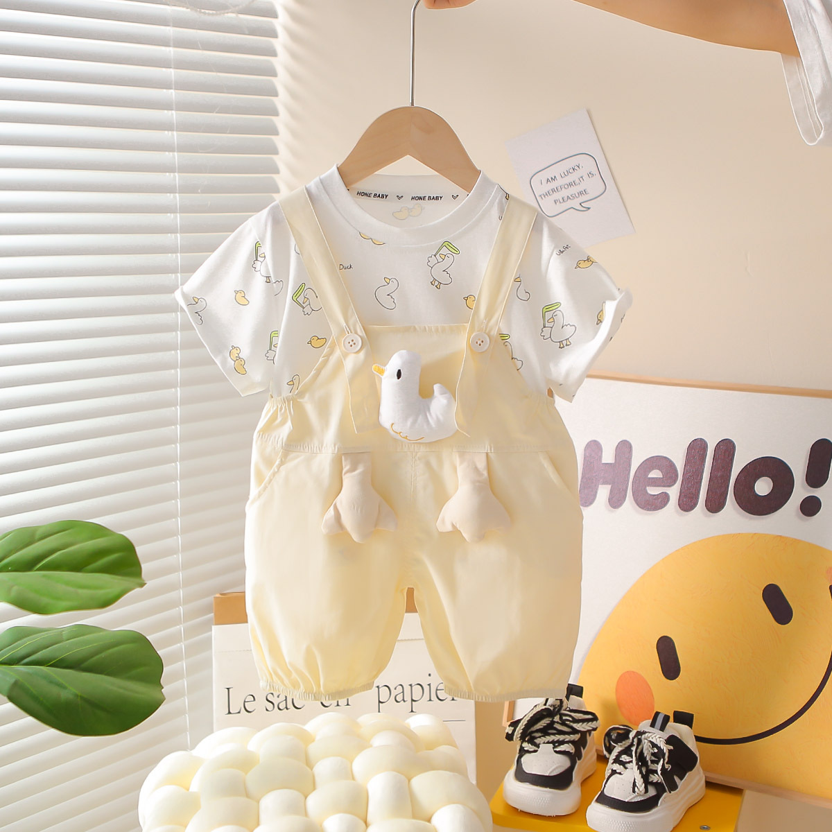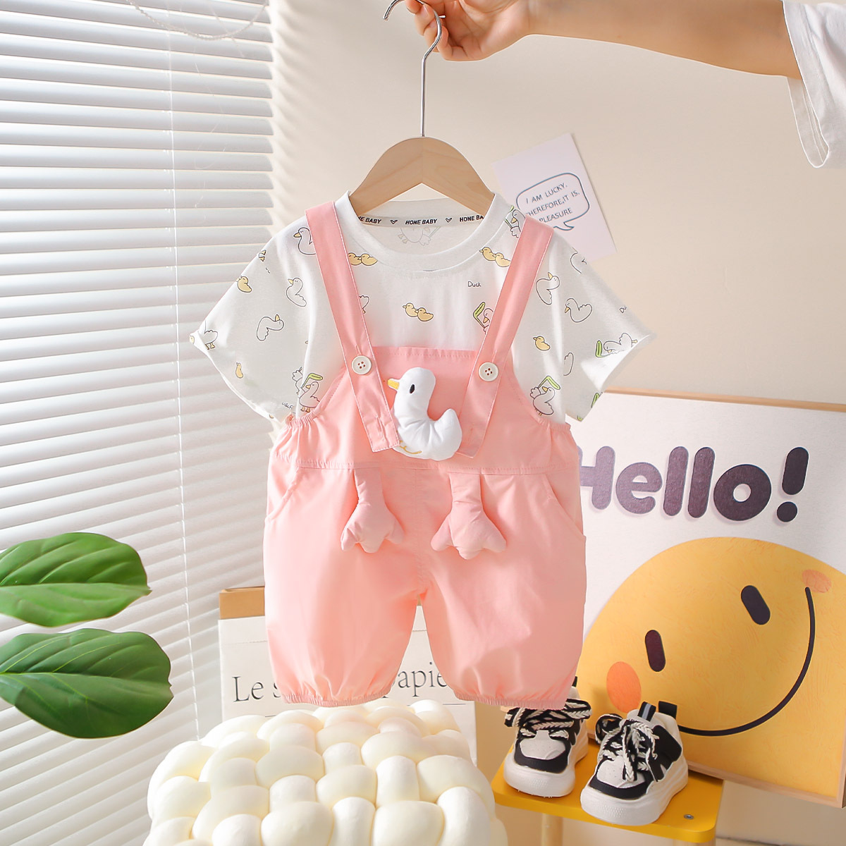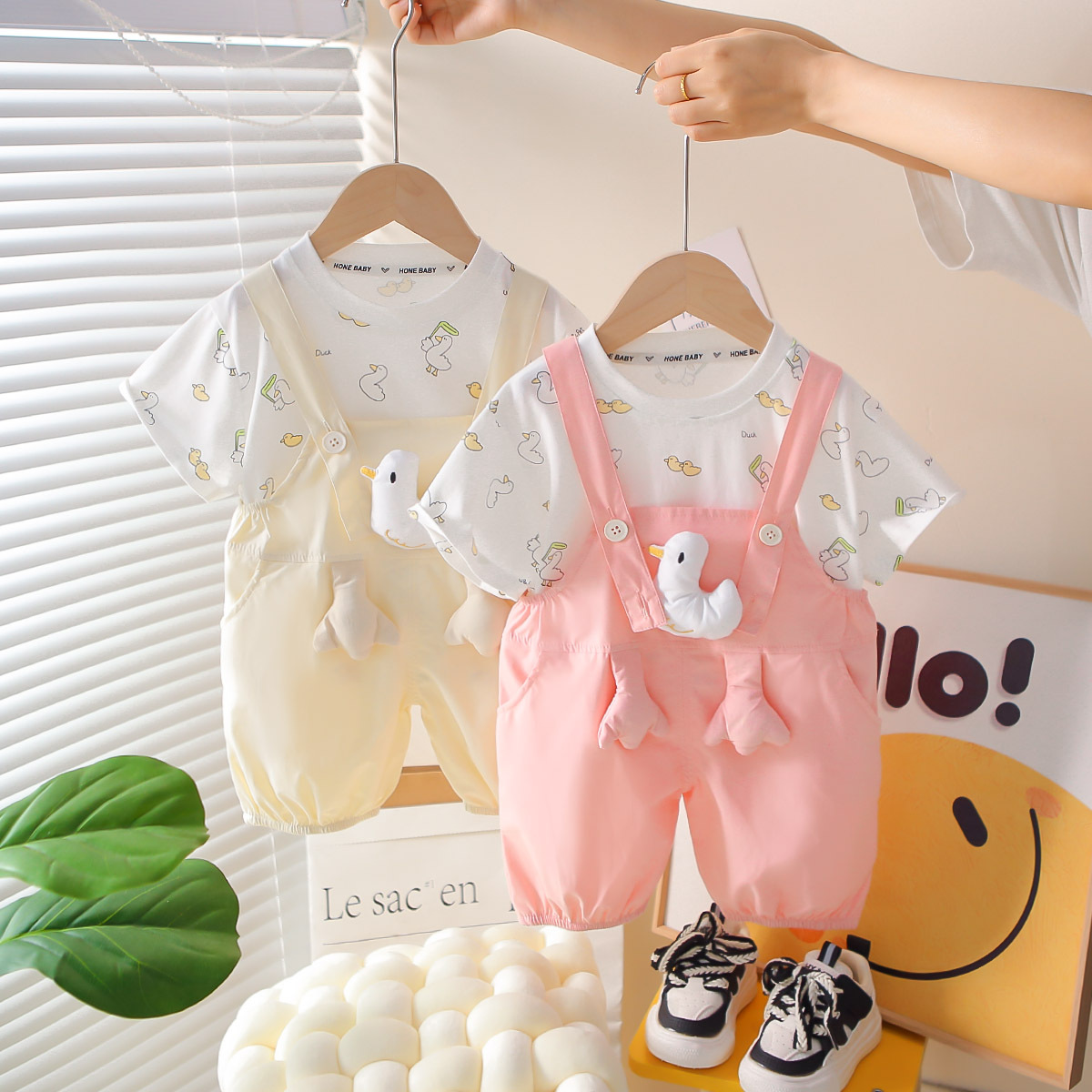 한국식 여름 새 아기 세련 된 세트 여름 스타일 소년과 소녀의 3 차원 오리 스트랩 유행 외주 세트 트렌디스토어 가기