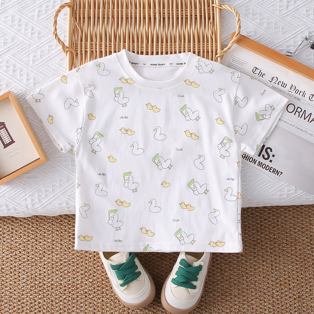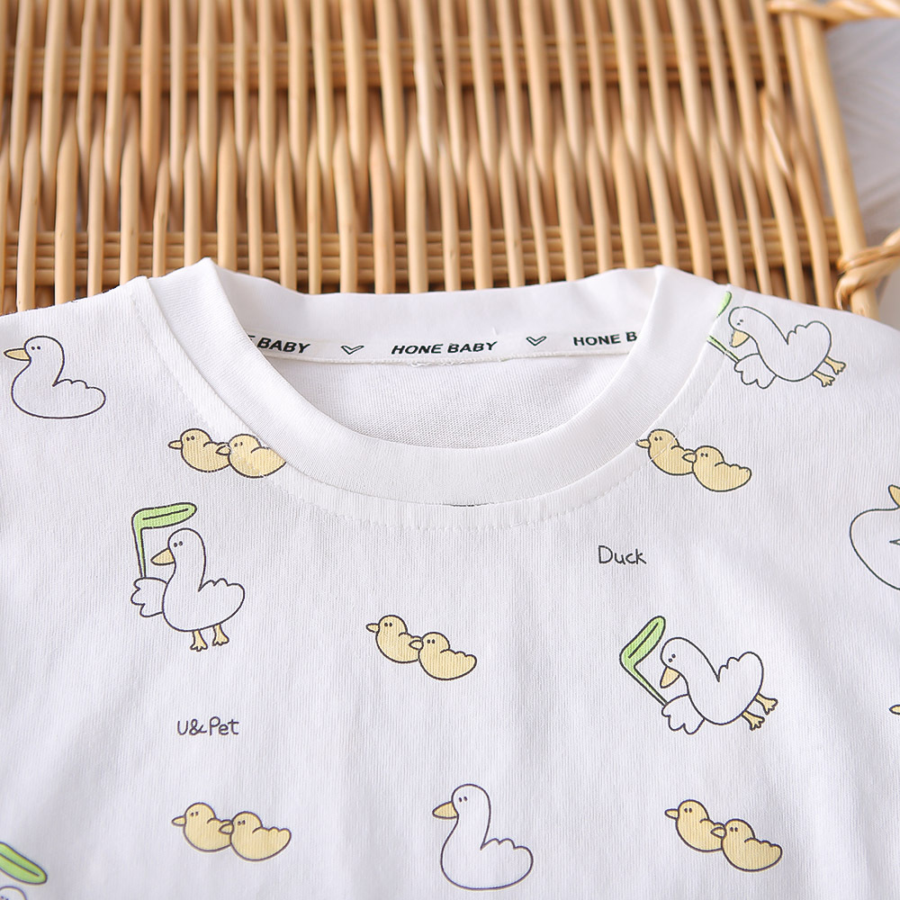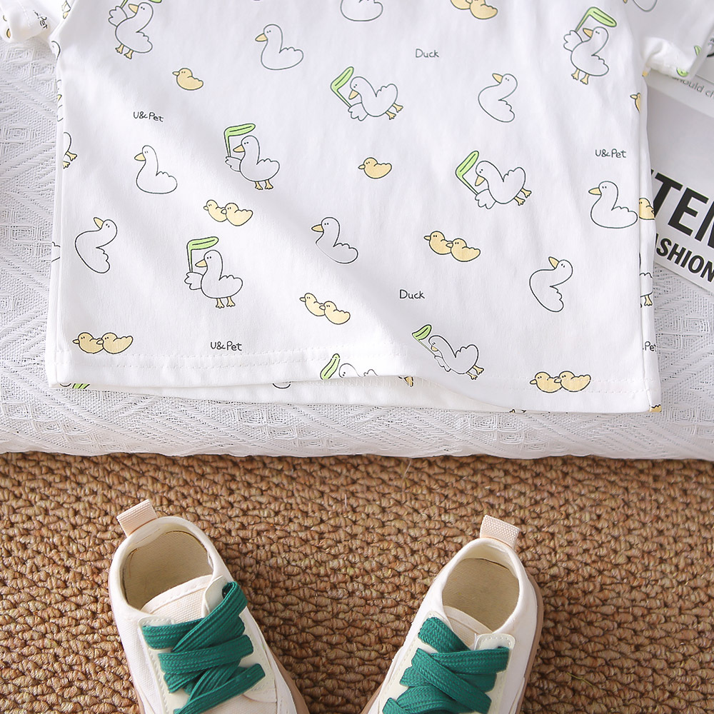 한국식 여름 새 아기 세련 된 세트 여름 스타일 소년과 소녀의 3 차원 오리 스트랩 유행 외주 세트 트렌디