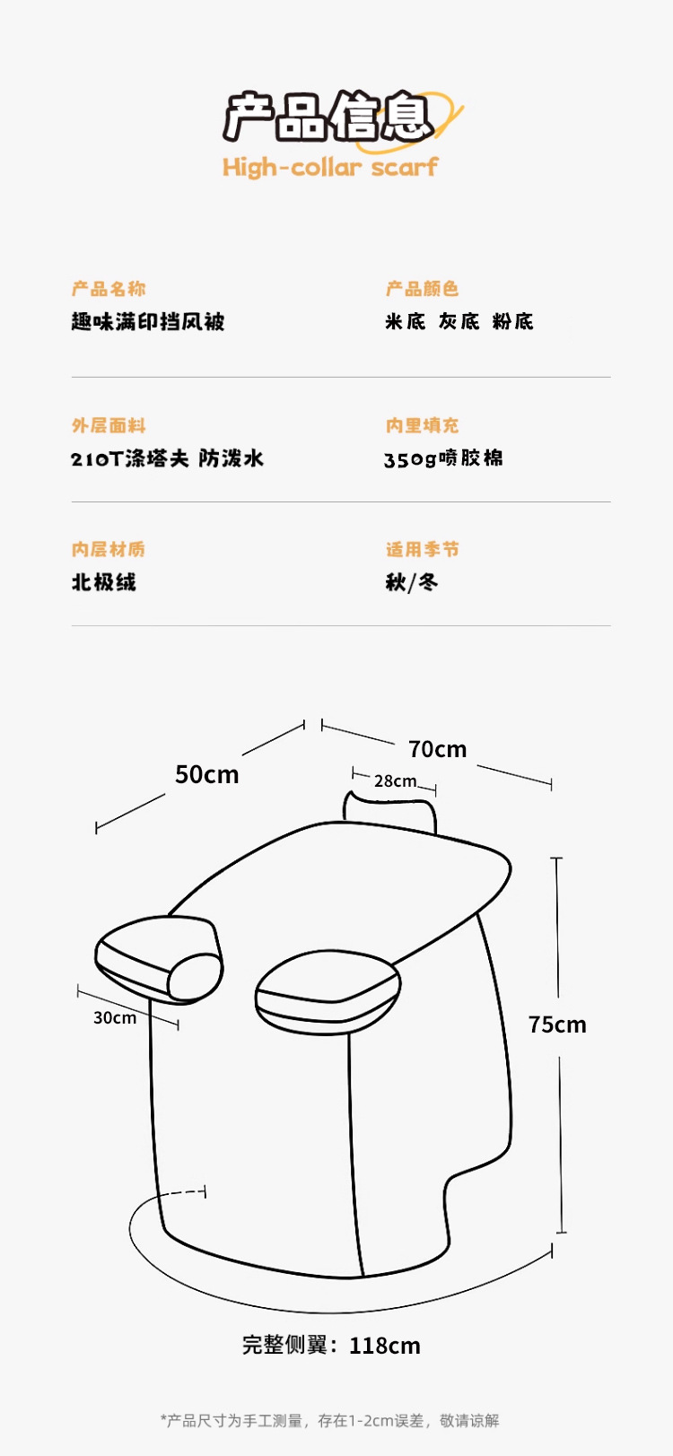 • 업그레이드된 초특급 두께】 넓어진 옆 날개로 방풍 및 보온 강화 - 감곰
