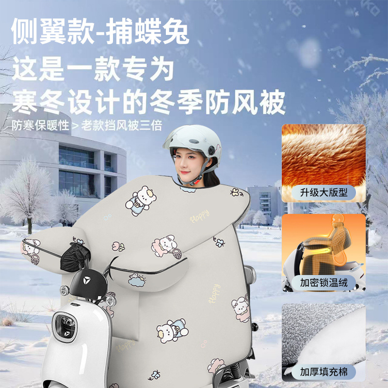 전기차 방풍 커버, 겨울철 두껍고 벨벳 소재로 추위를 막아 따뜻하게 유지하는 방수 오토바이/전기차 방풍 커버