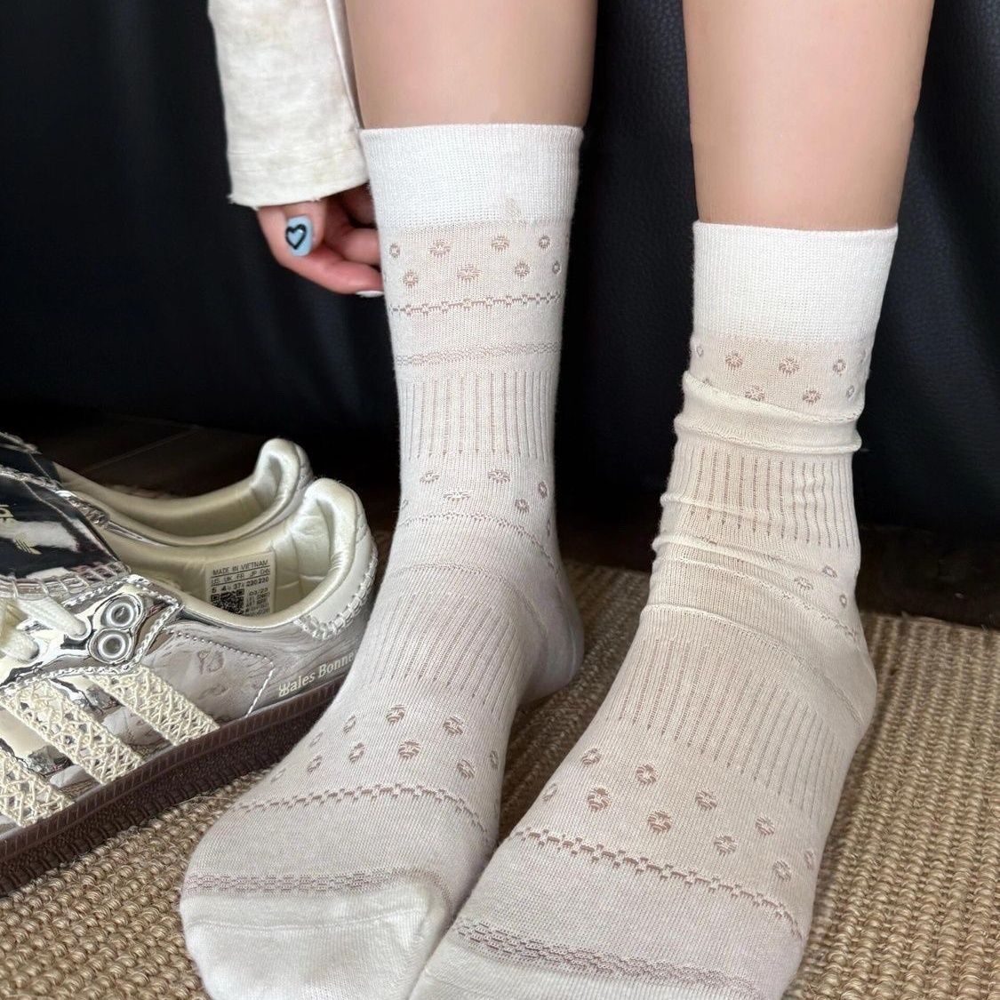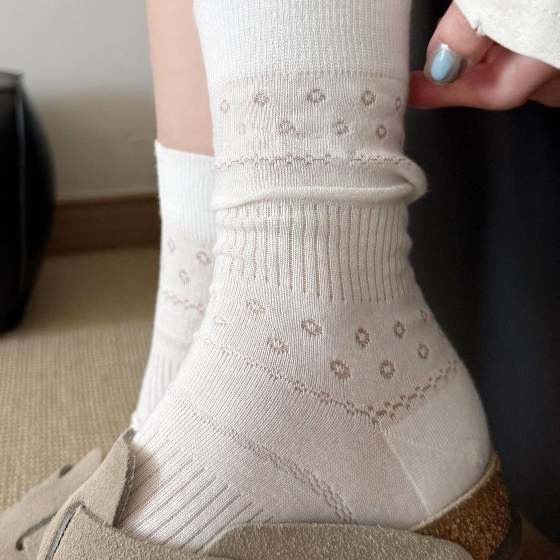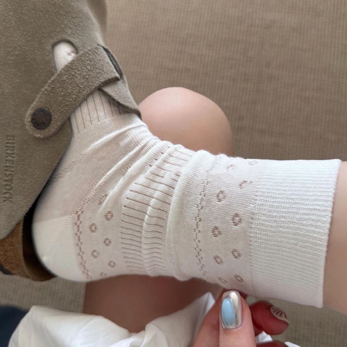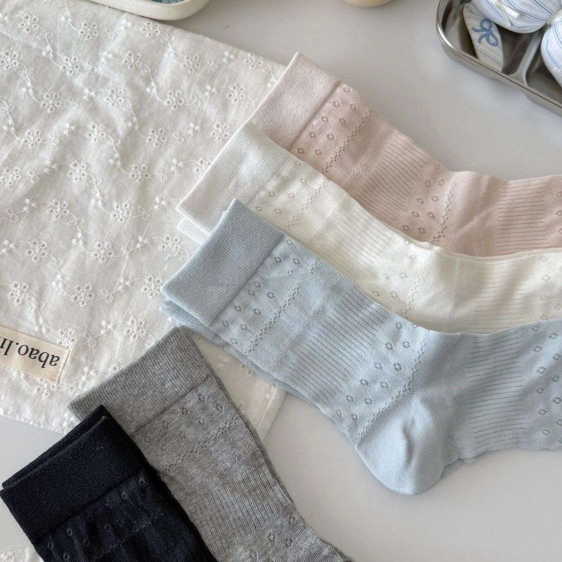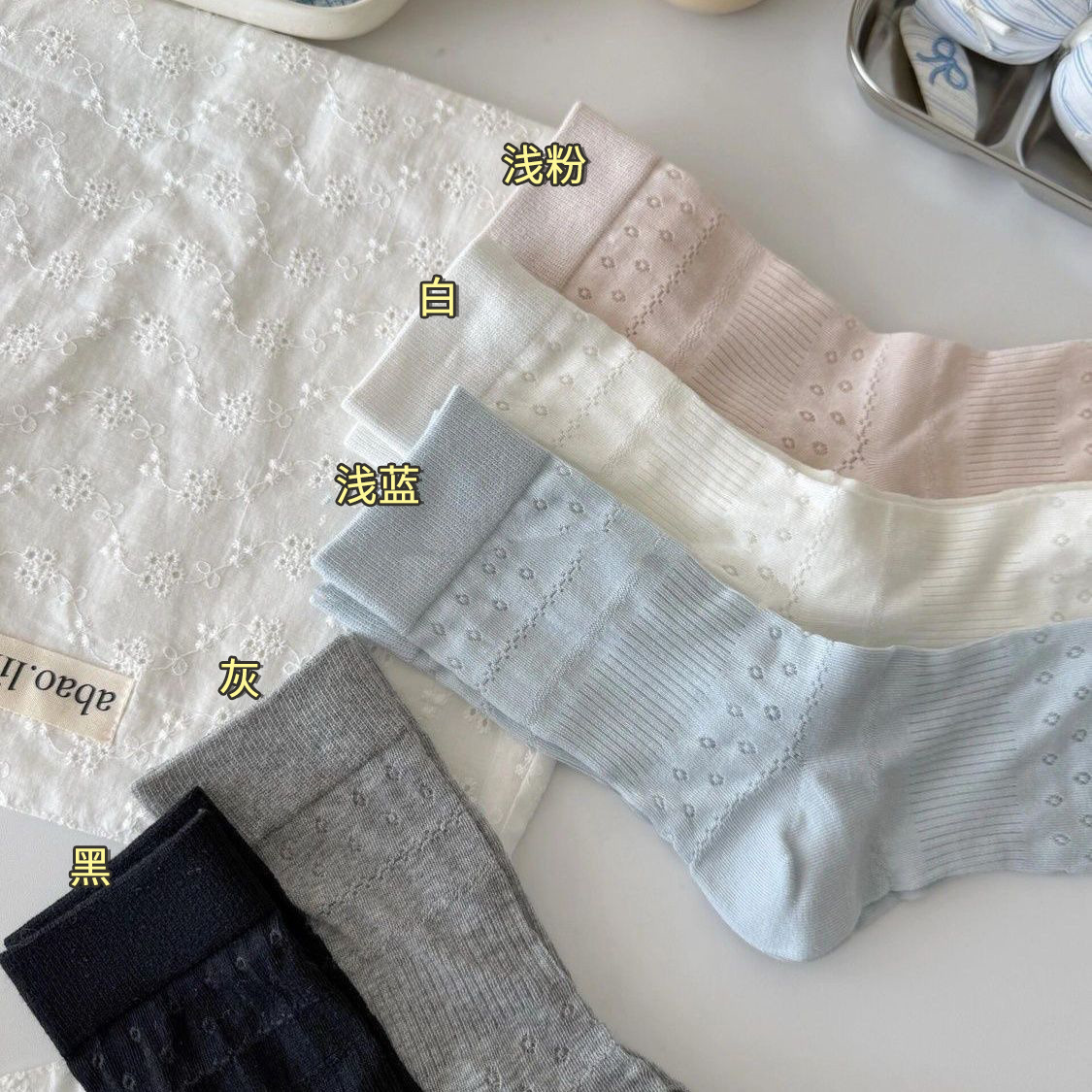 주지 양말 여성 미드 튜브 양말 여름 얇은 메쉬 소녀 일본 스타일 발레 스타일 활 흑백 JK 양말 여성
