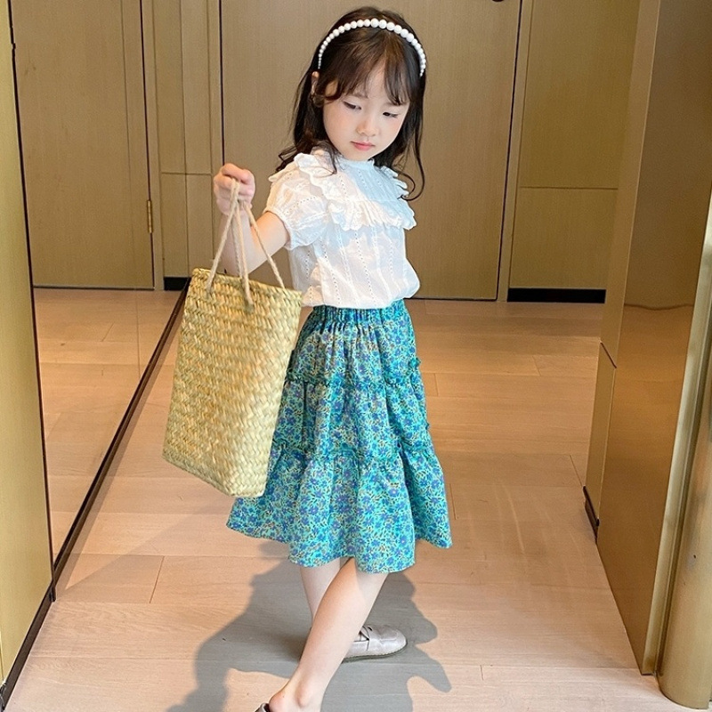 아동복 여아 스커트 2025 여름 새 스타일 인터넷 연예인 사랑 꽃 다용도 여아 중대형 학생 스커트