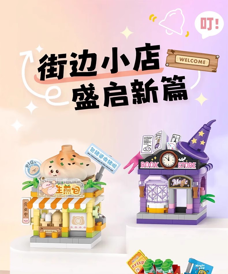 LOZ 팬더 마작 홀 빌딩 블록 소형 작은 입자 교육 조립 장난감 스트리트 뷰 룸 모델 원시 프라이드 백 서점스토어 가기