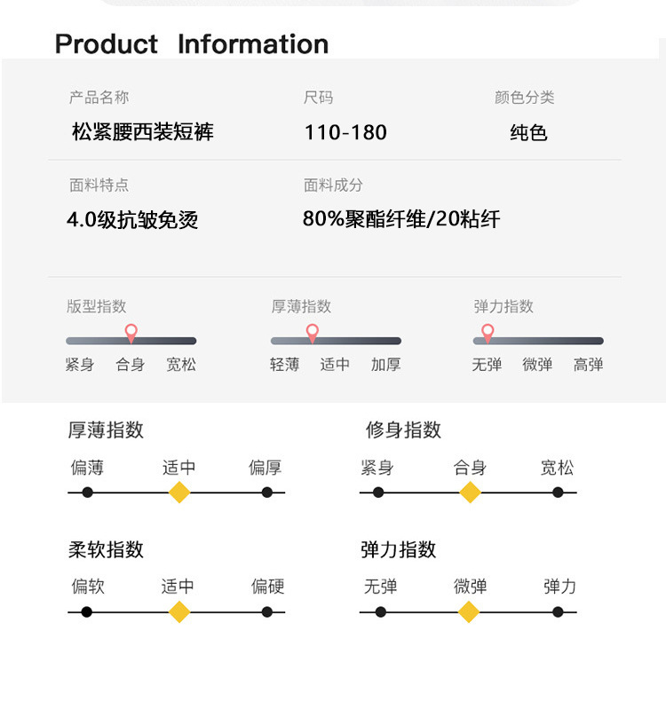 • 신축성 있는 허리 주름 방지 수트 반바지 [화이트]
