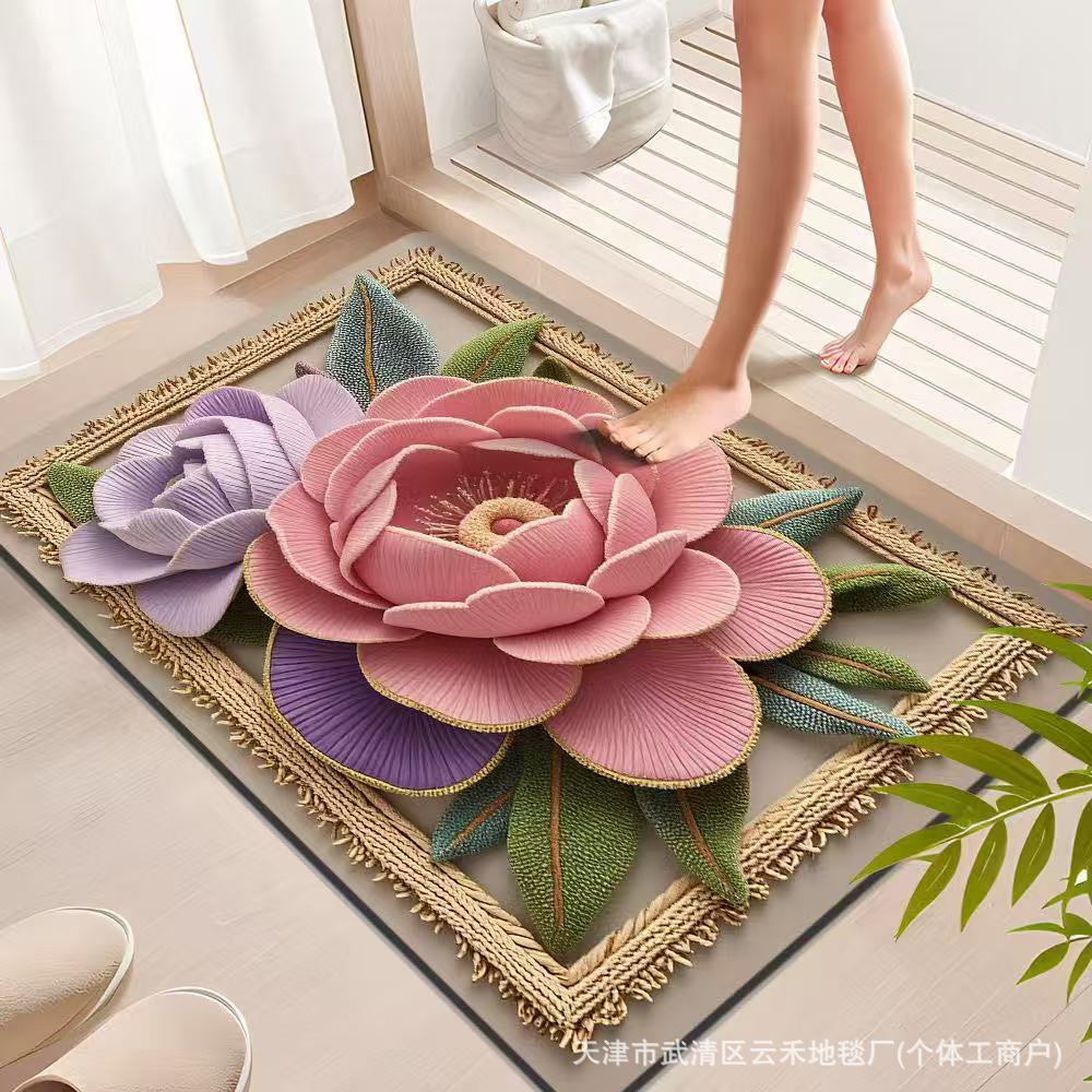 국경 간 재고 도매 3d 꽃 바닥 매트 diatom 진흙 미끄럼 방지 빠른 건조 매트 욕실 흡수성 바닥 매트 가정용 도어 매트스토어 가기