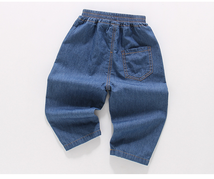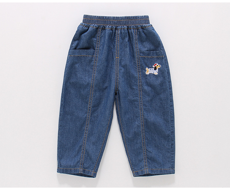 [수출에서 국내 판매로 변경] 아동용 순면 청바지, 얇은 중소형 아동용 만화 루즈한 면 스트레이트 팬츠