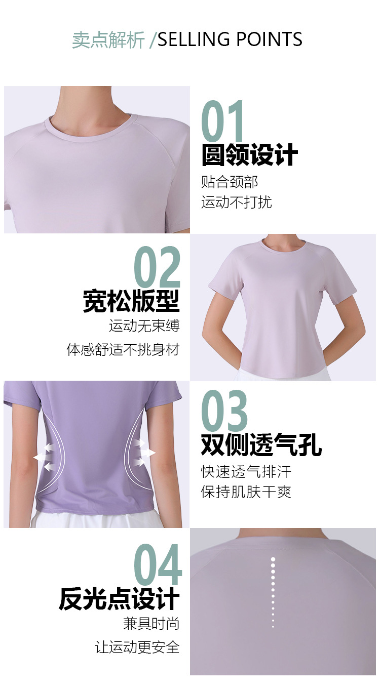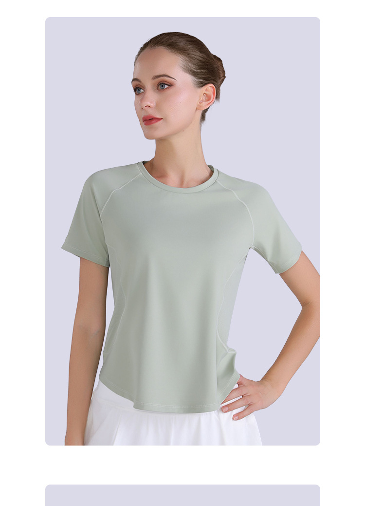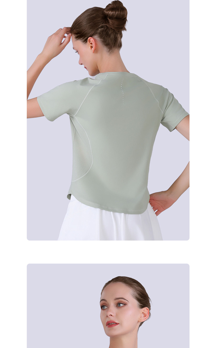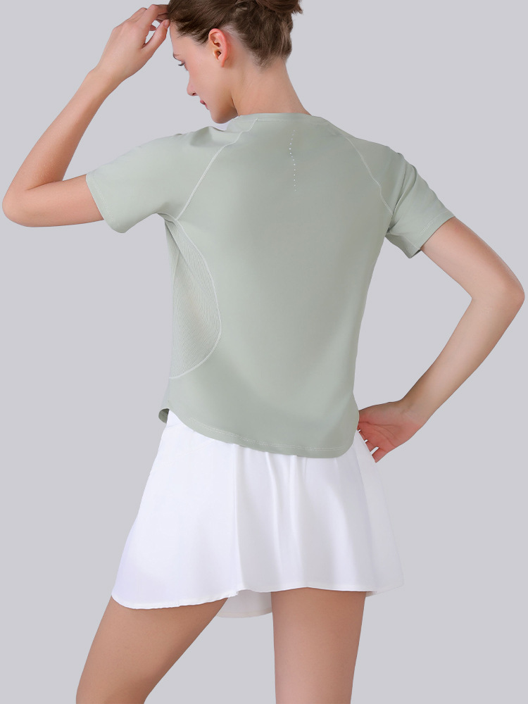 신속 건조 메쉬 바느질 반팔 여름 얇은 통기성 아우터 러닝 레저 스텝 스포츠 피트니스 티셔츠 여성용 요가 의류