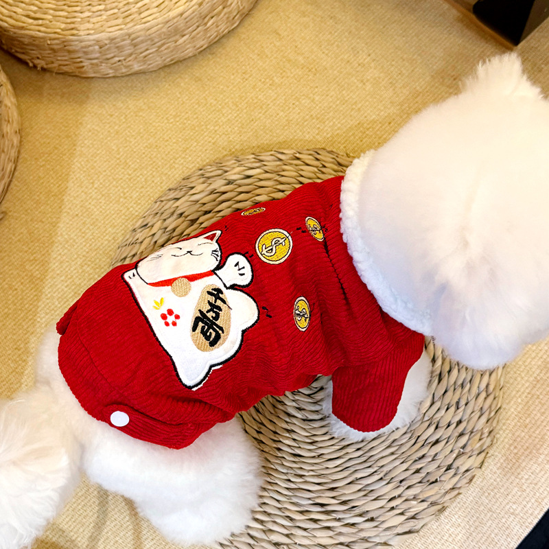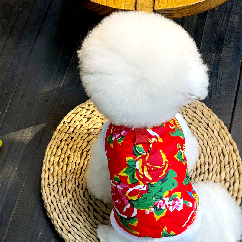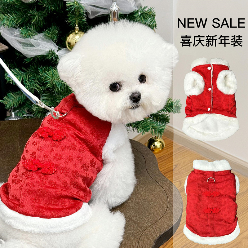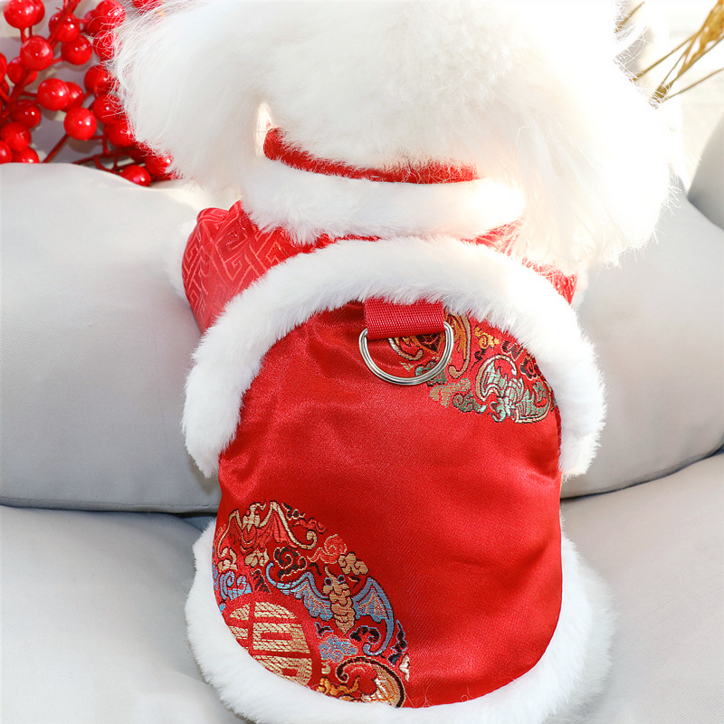 개와 고양이 견인 버클 가을, 겨울 애완 동물 옷 테디 비숑 슈나우저 작은 개 중국 스타일 면화 조끼스토어 가기