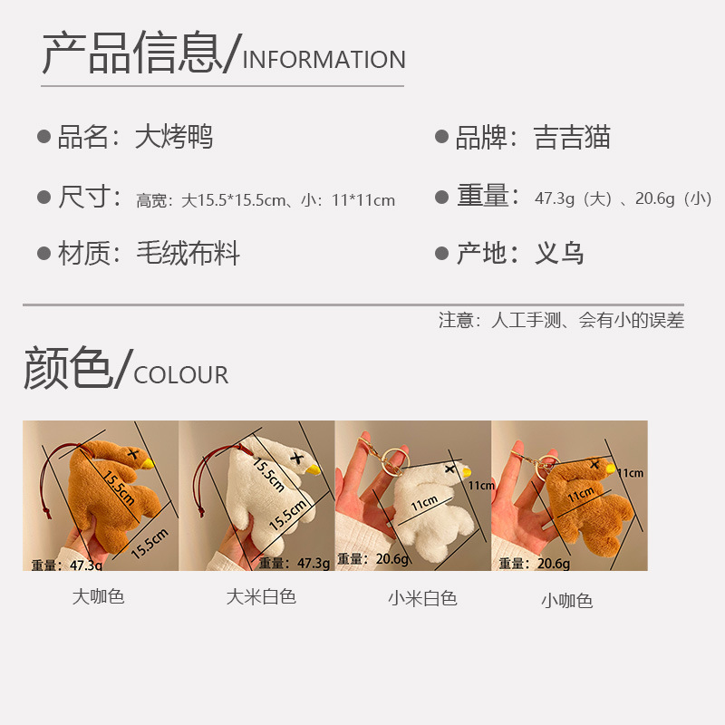 구이 오리 키 체인 봉제 인형 펜던트 만화 인형 펜던트 크리 에이 티브 귀여운 가방 펜던트 이벤트 선물스토어 가기