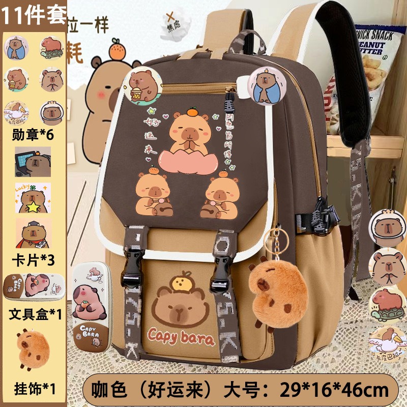 Kapi의 새로운 초등학교 가방 소년과 소녀 경량 만화 Capybara 대용량 척추 보호 Bala 어린이 배낭