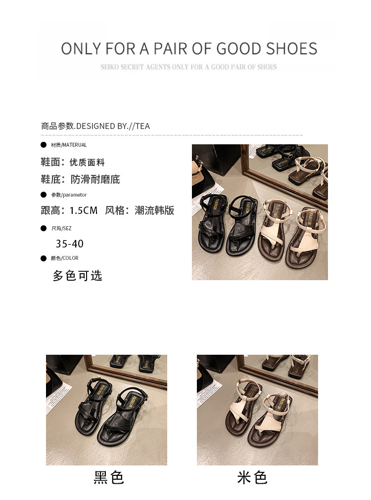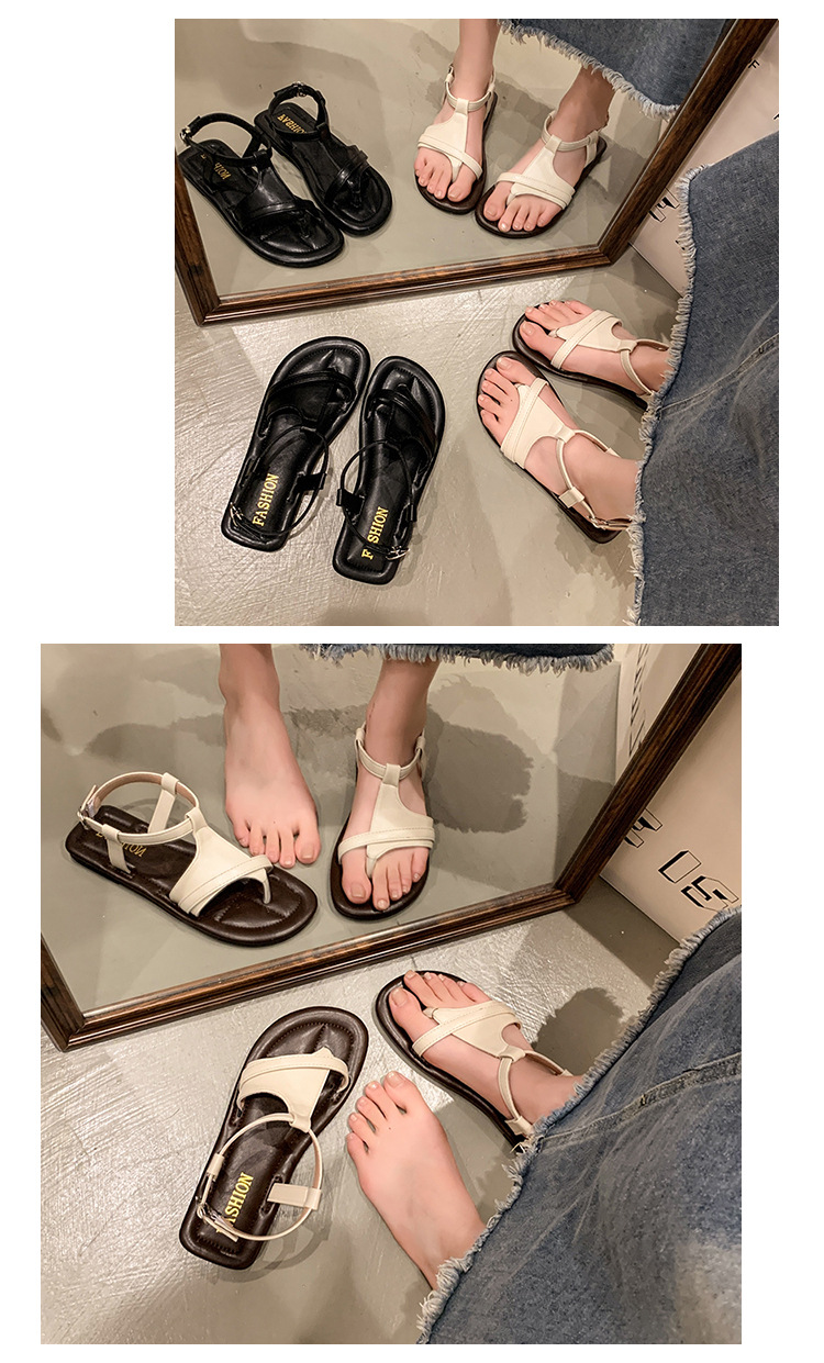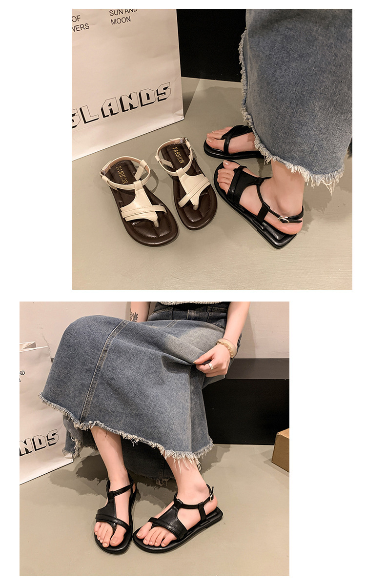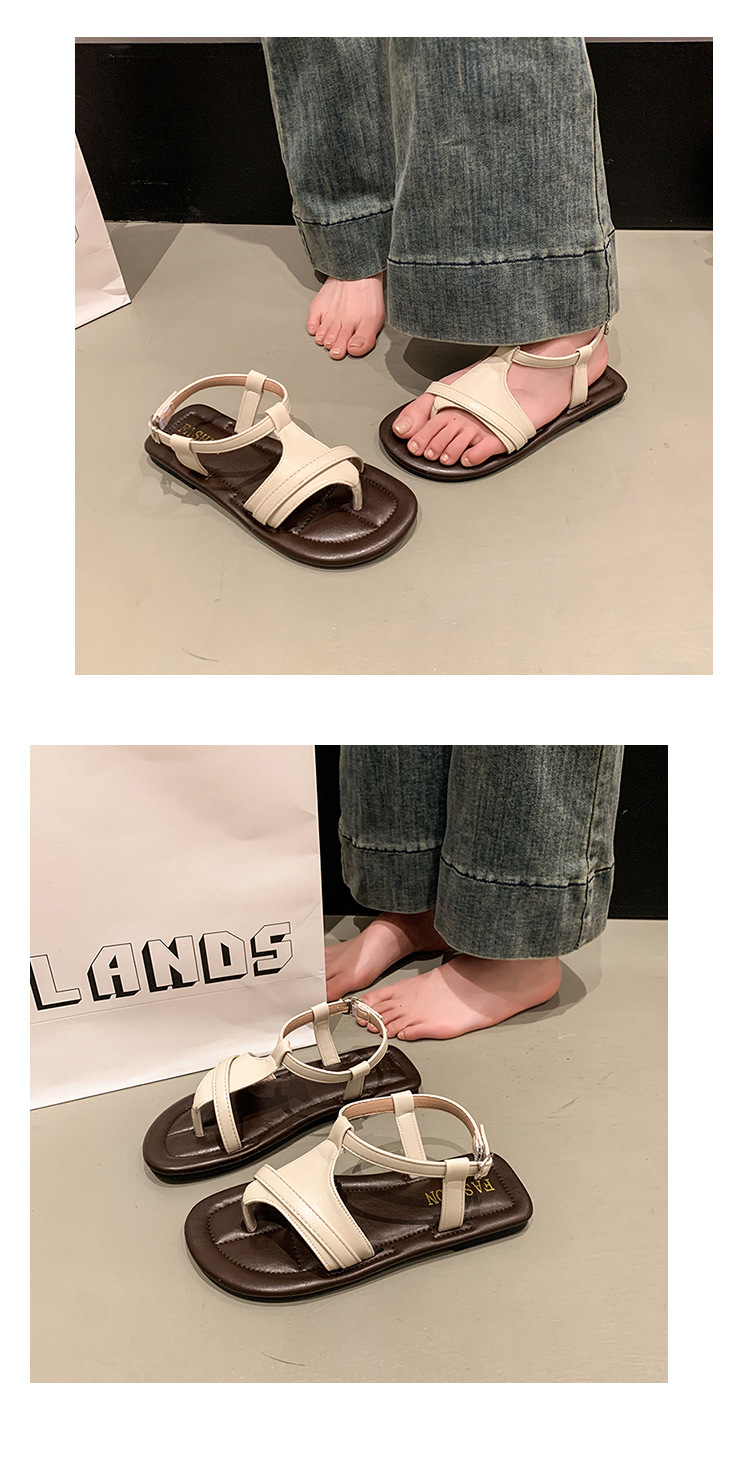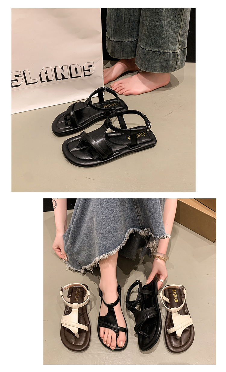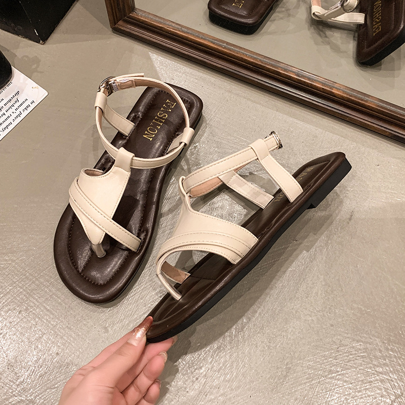 여성용 플랫 샌들 2025 새로운 여름 슬리퍼 요정 스타일 스커트 포함 비치 슈즈 로마 샌들스토어 가기
