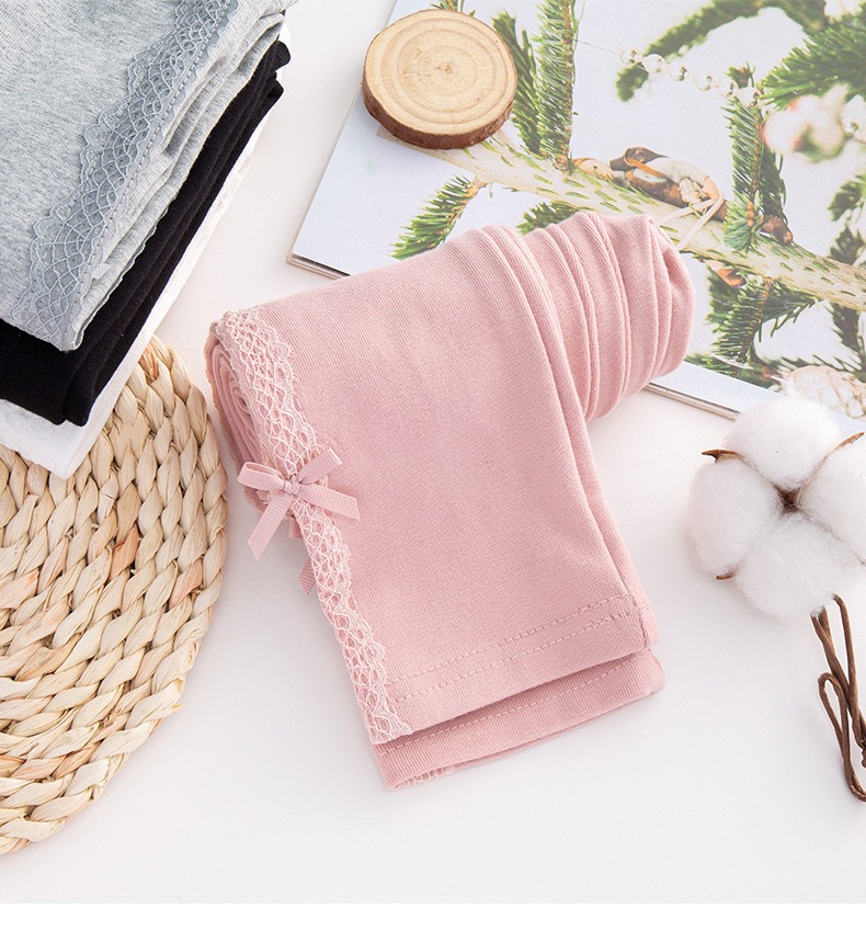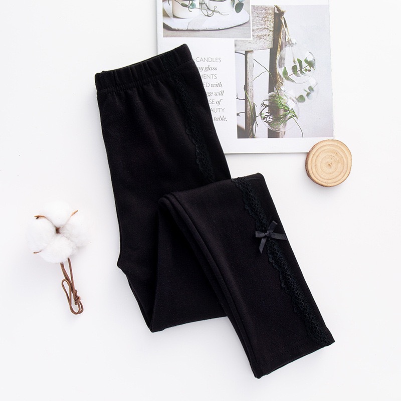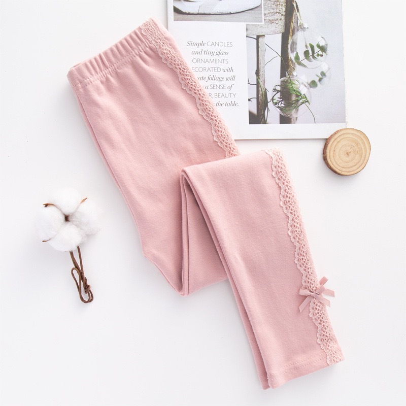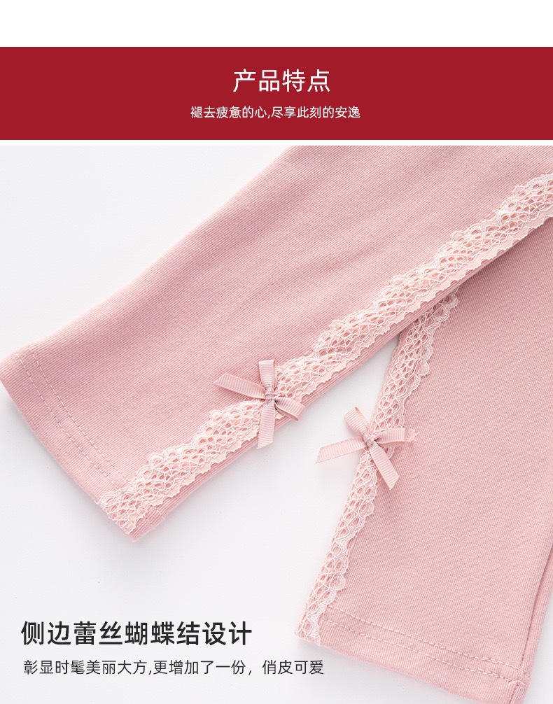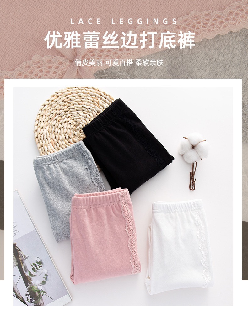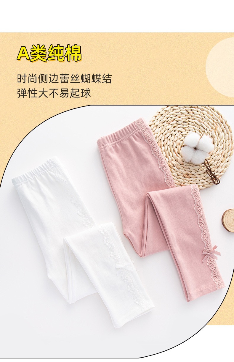 여아 레깅스 봄 가을 얇은 스타일 여아용 레이스 장식 슬림핏 긴바지 플리스 안감 아동복 세트 한국 스타일