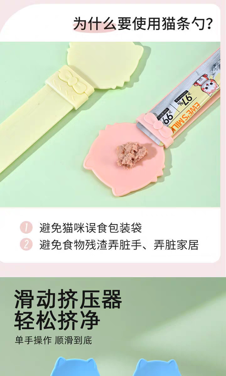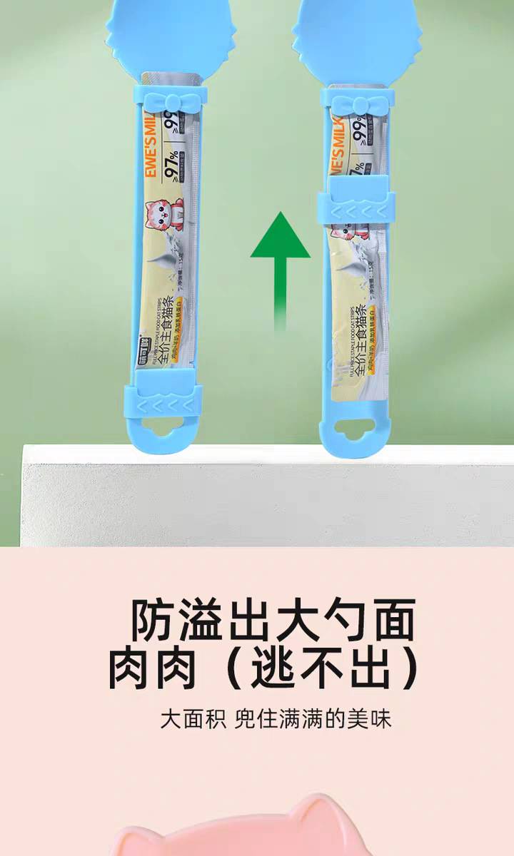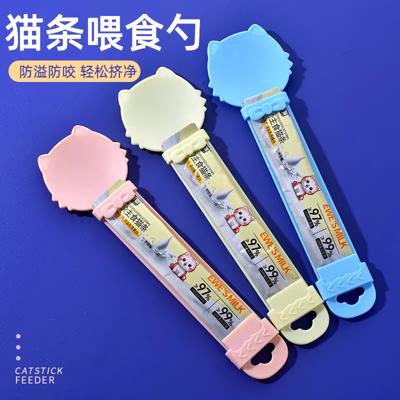 고양이 스트립 피더, 유출 방지, 간편하게 짜낼 수 있는 간식, 애완동물용 특수 스푼, 손잡이가 긴 스푼, 고기 퓨레, 애완동물 고양이 용품스토어 가기