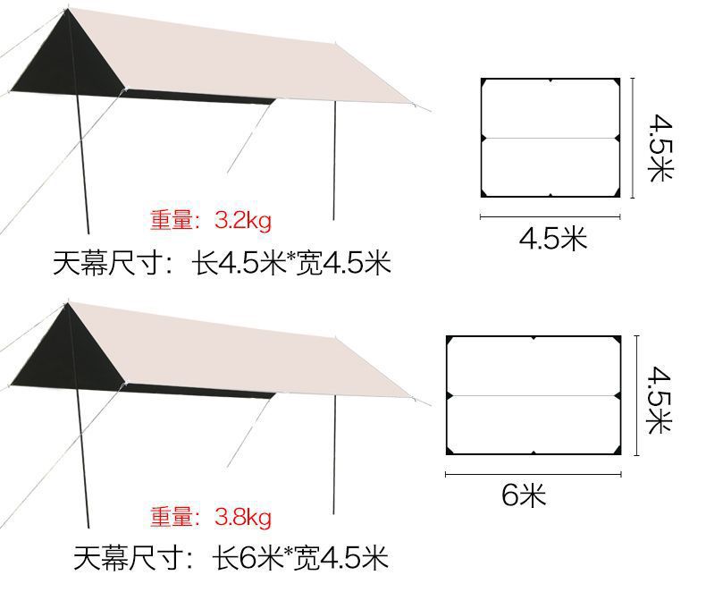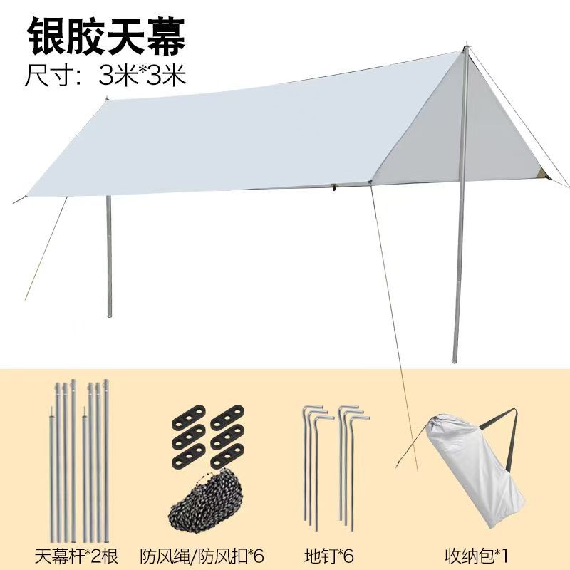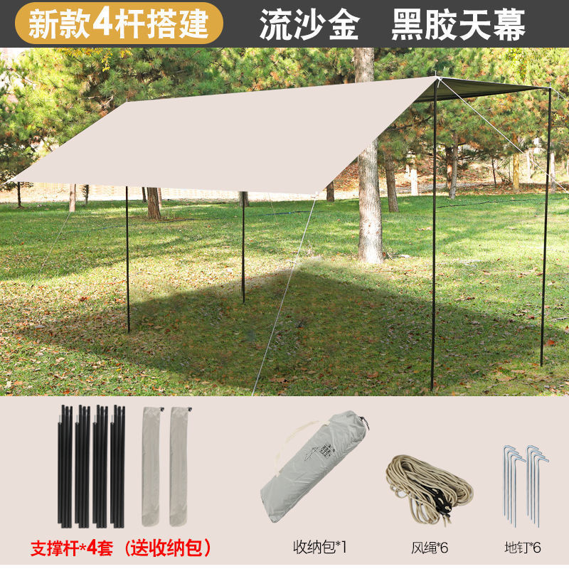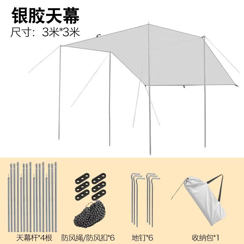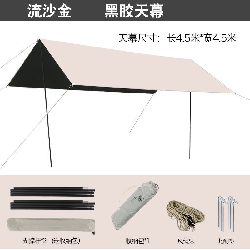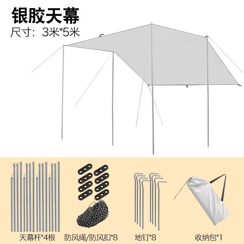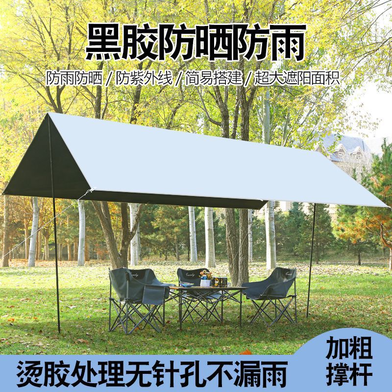 캐노피 블랙 고무 텐트 야외 캠핑 차양 휴대용 자외선 차단제 야외 캐노피 천 실버 코팅 두꺼운 커튼