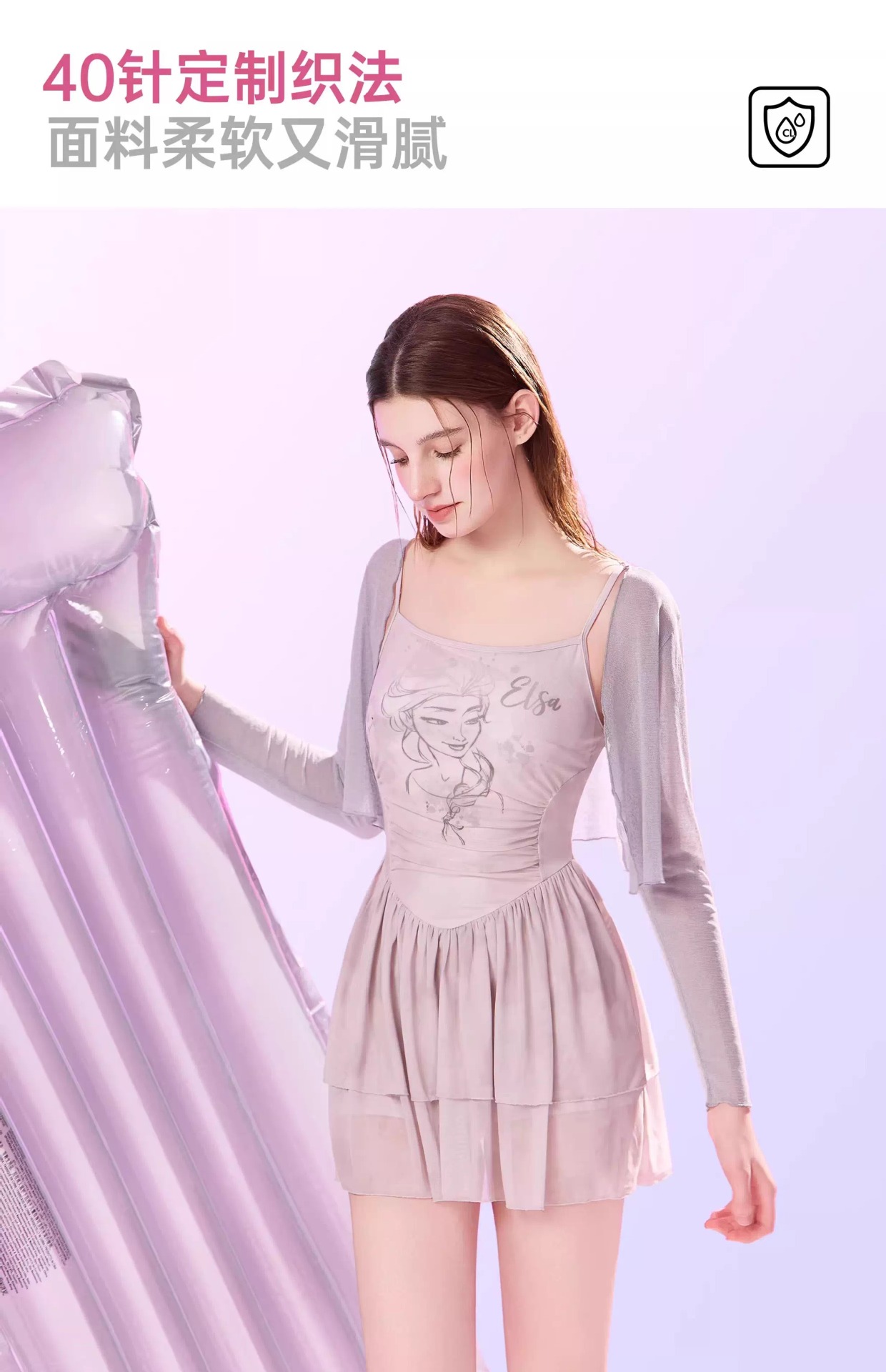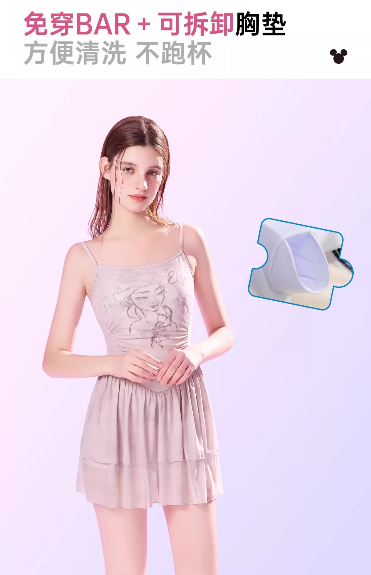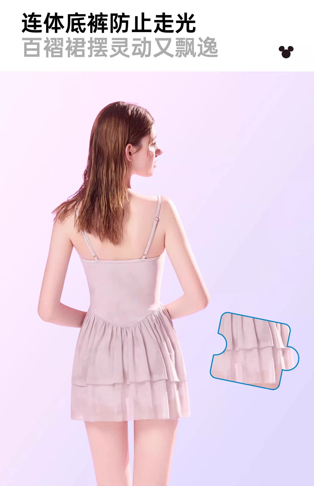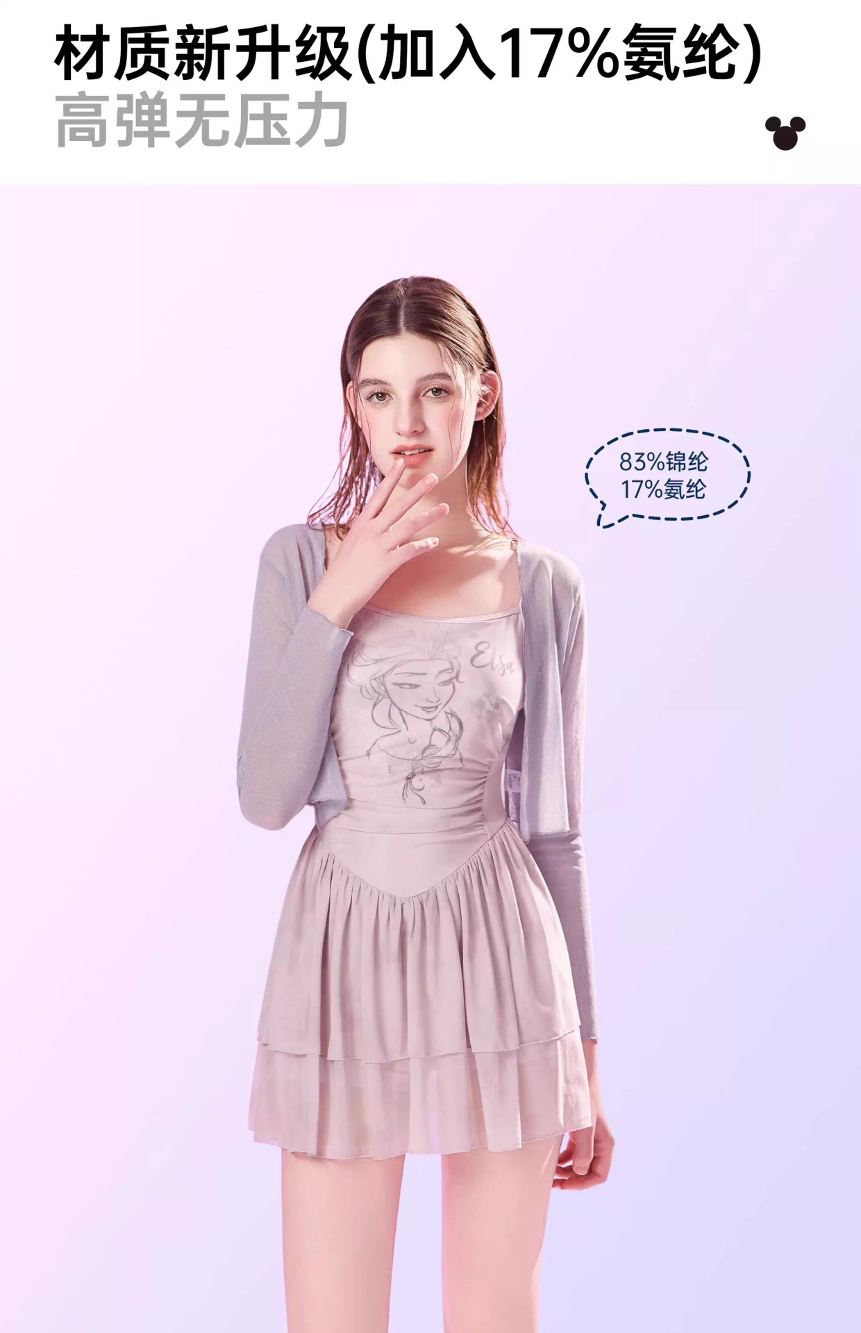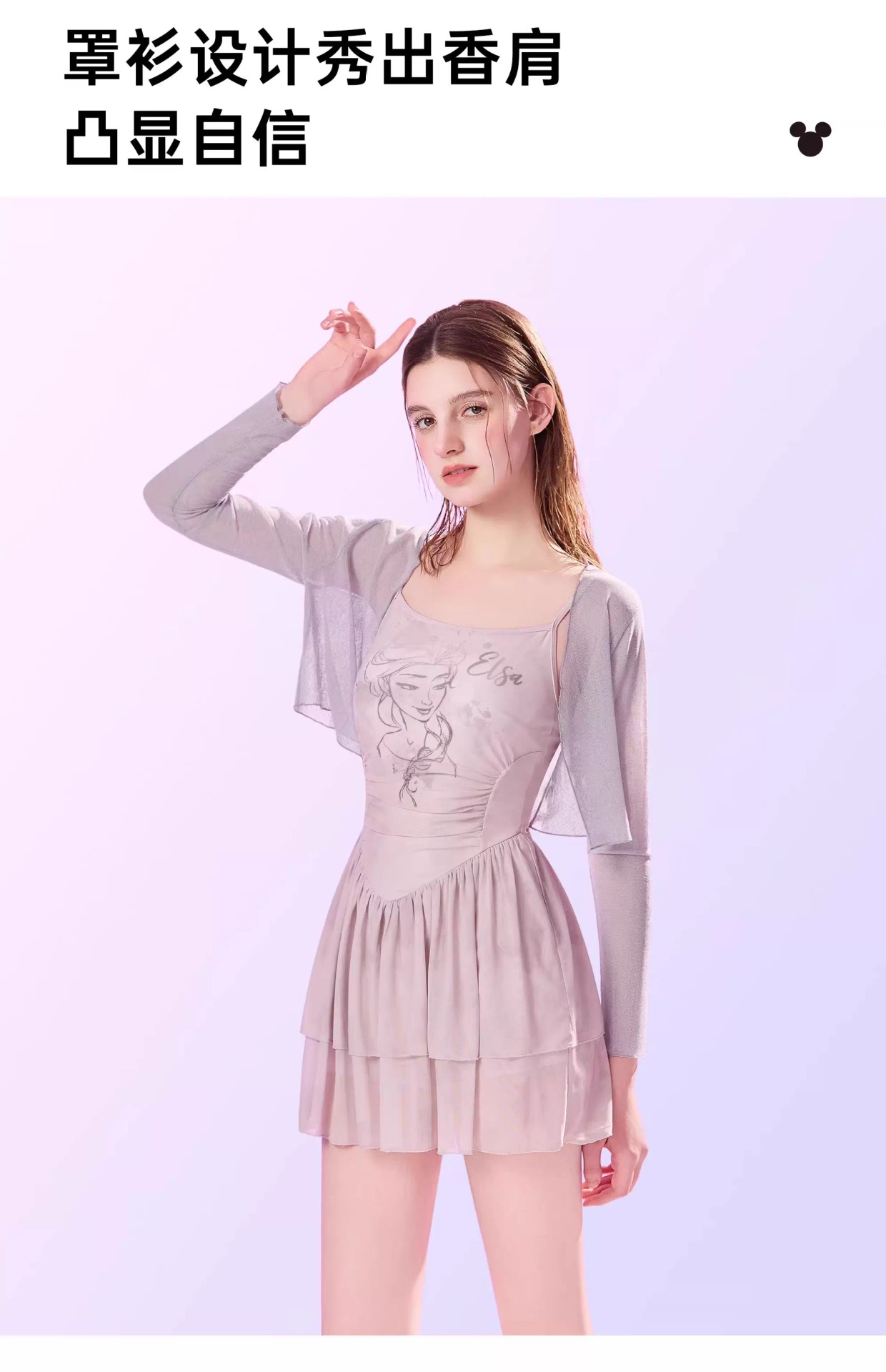 디즈니 수영복 여성 2025 새로운 원피스 스커트 스타일 배 커버 슬리밍 통기성 수영복 온천 자외선 차단 블라우스스토어 가기