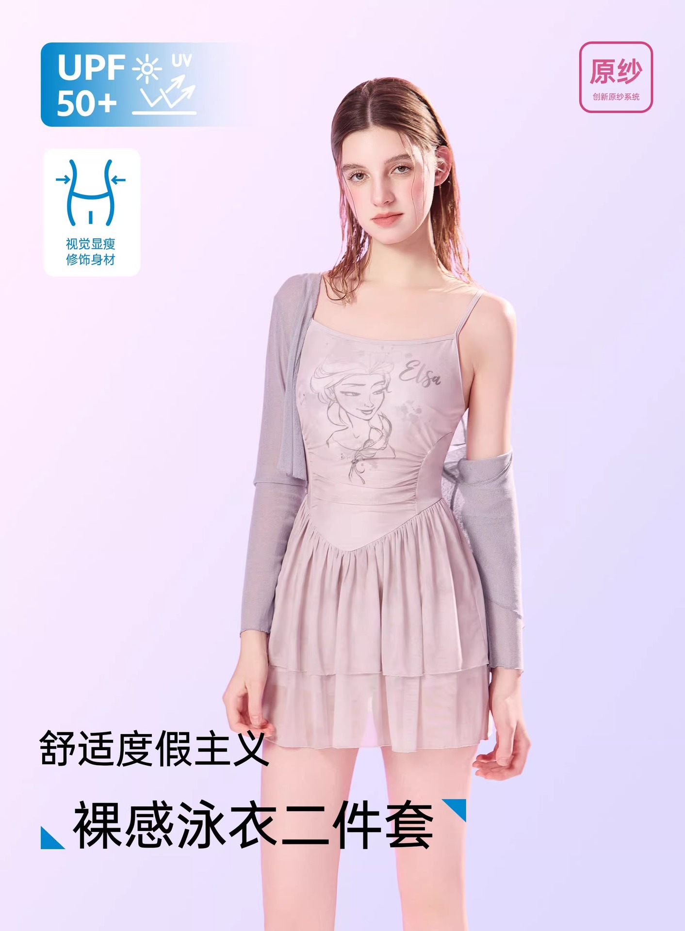 디즈니 수영복 여성 2025 새로운 원피스 스커트 스타일 배 커버 슬리밍 통기성 수영복 온천 자외선 차단 블라우스
