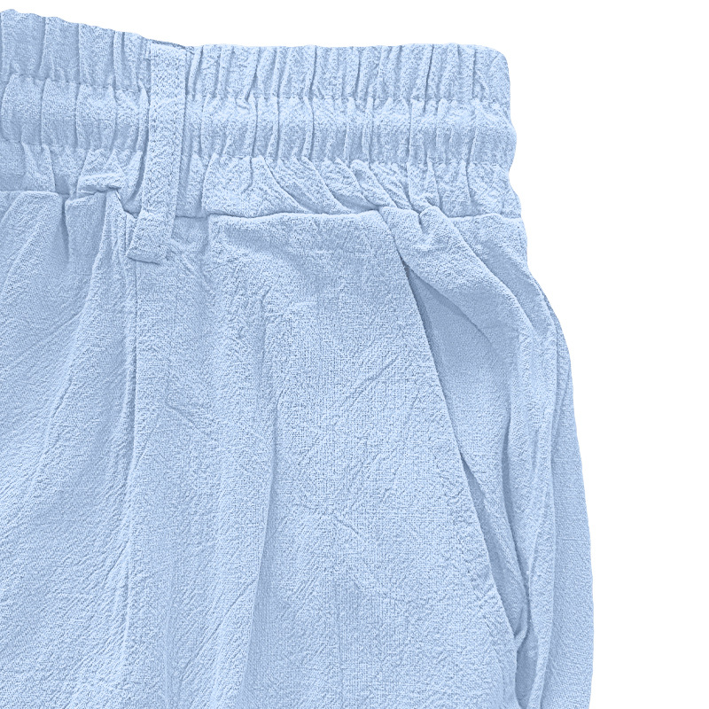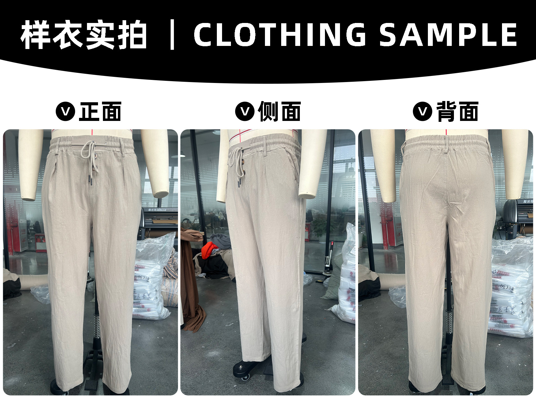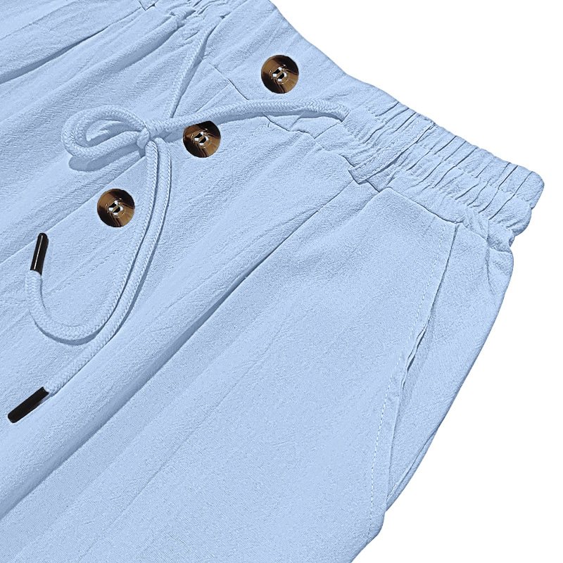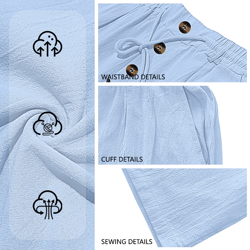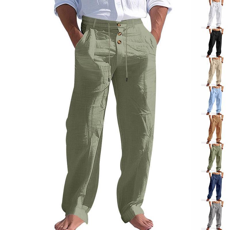버튼 장식이 있는 크로스보더 미국 남성용 면 및 린넨 바지, 드로스트링 여름 비치 바지, 스트레이트 솔리드 컬러 통기성 바지스토어 가기