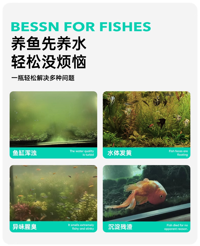 BESSN 수조 정수기 니트로바이오틱 수질 정화 투명하고 깨끗한 관상어 및 어류 특수 냄새 제거