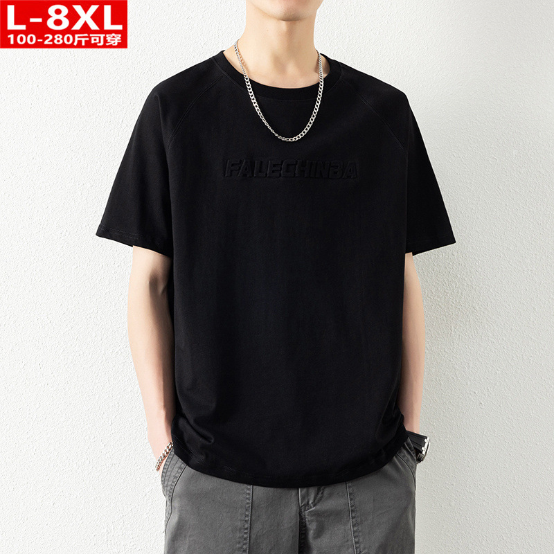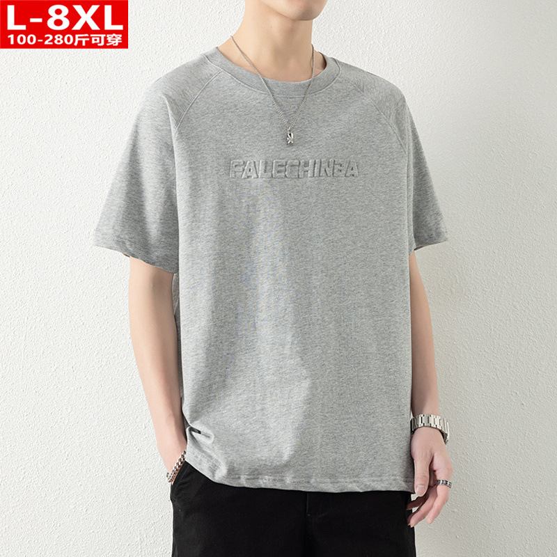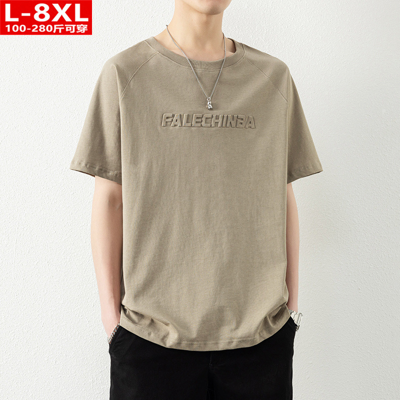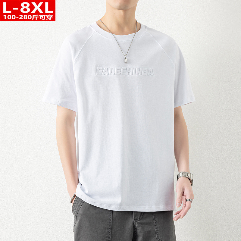 여름 트렌디 남성면 프린트 라운드 넥 반팔 티셔츠 뚱뚱한 남자 플러스 사이즈 느슨한 캐주얼 티셔츠