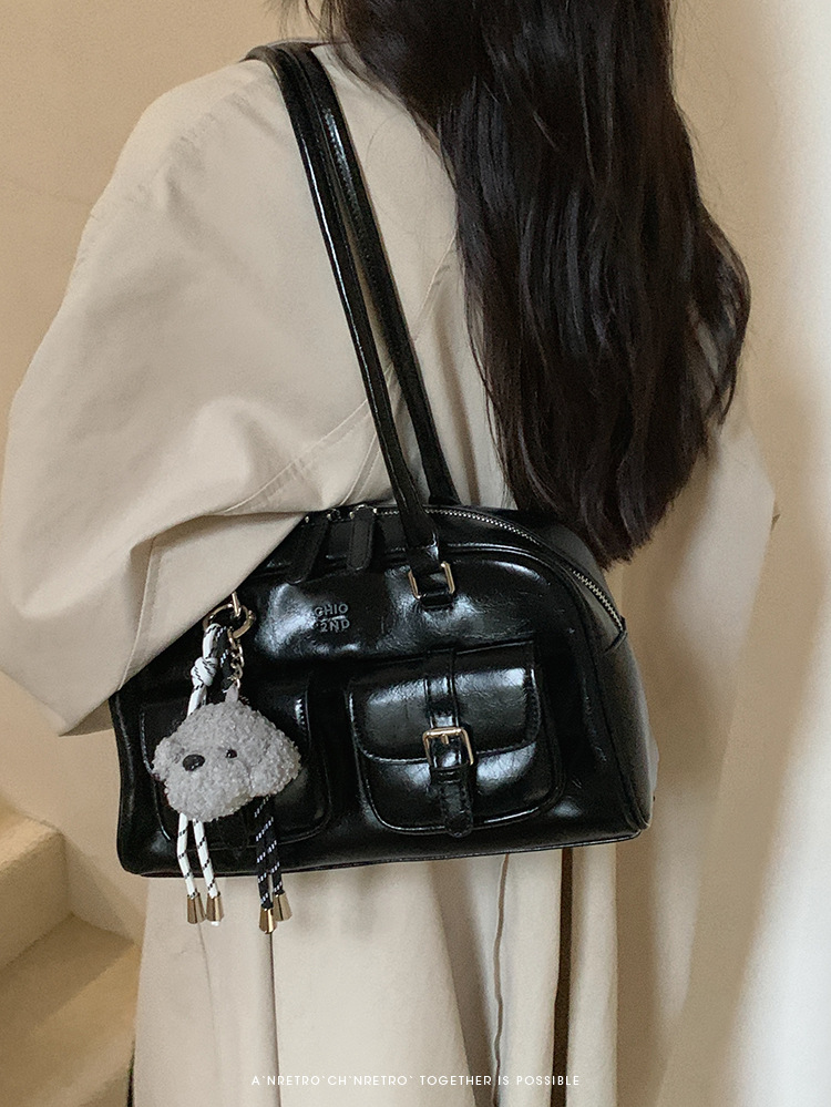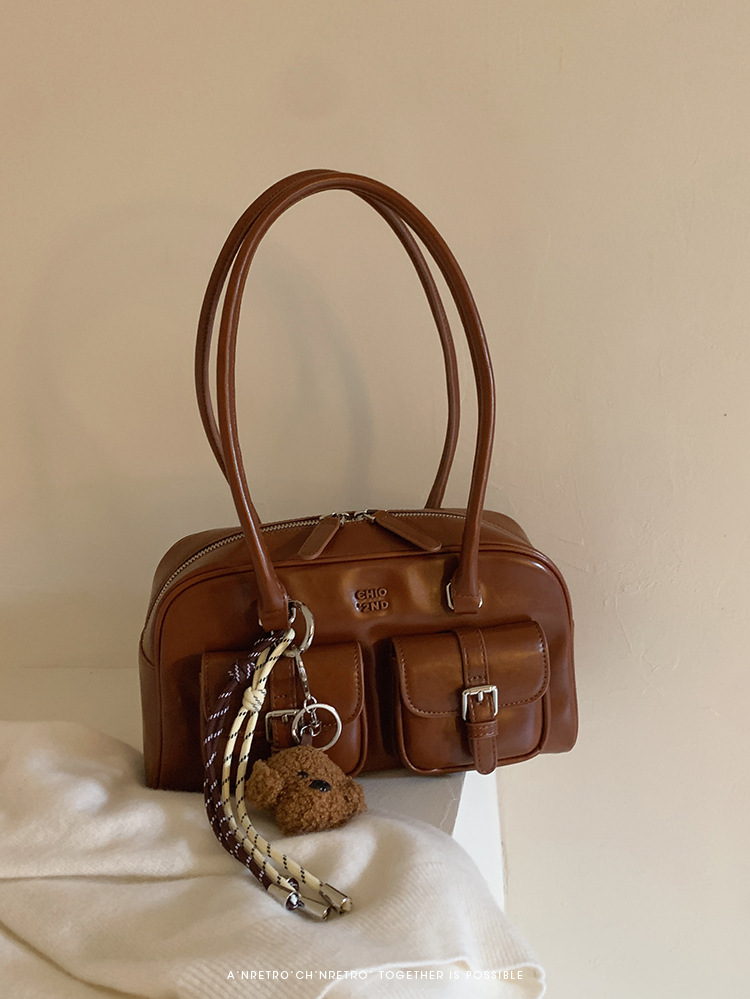 Nanfeng Chio2nd 삼바 라운지 베개 가방 여성 가을 복고풍 보스턴 가방 통근 휴대용 어깨 가방