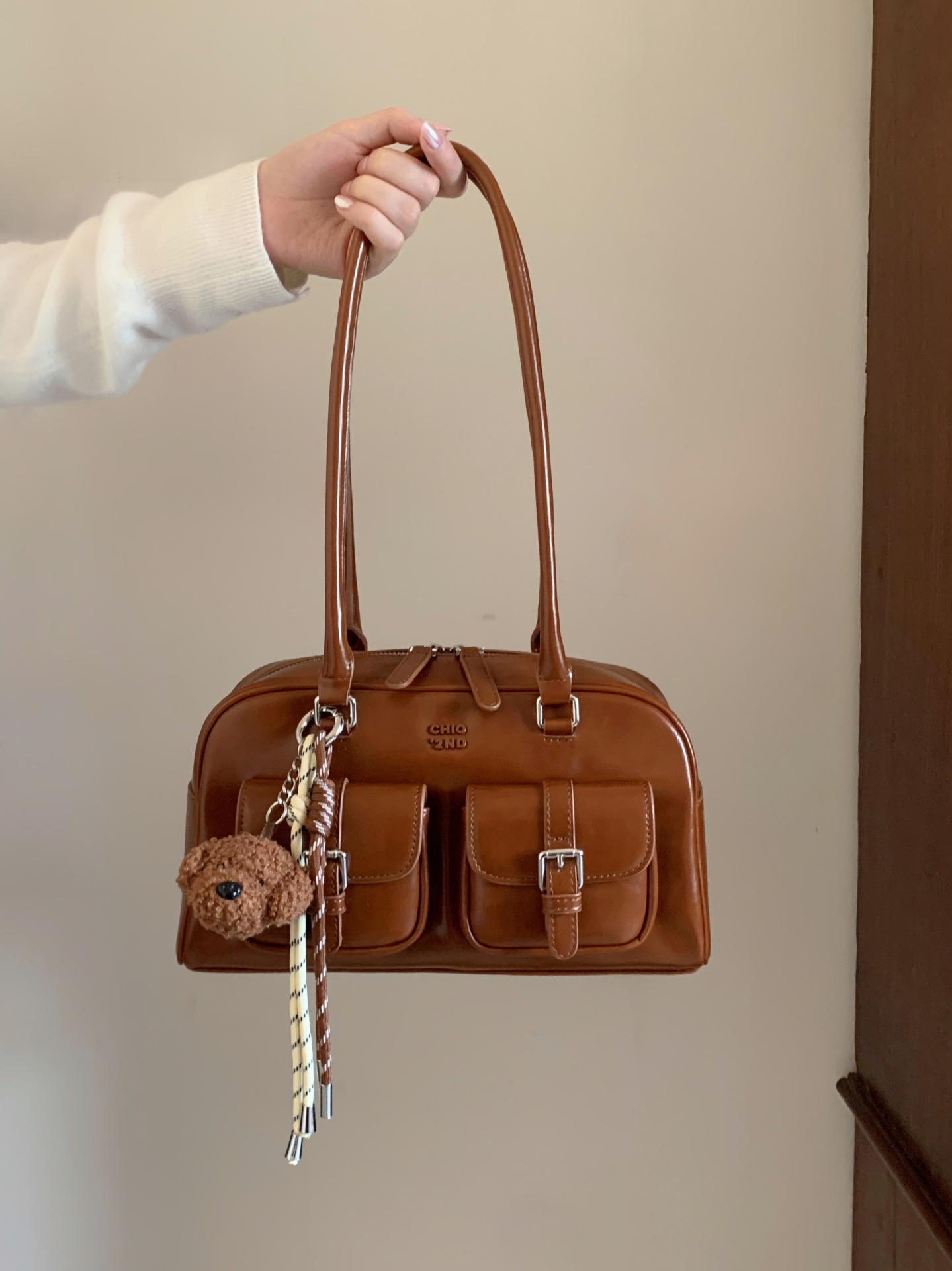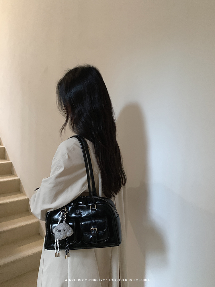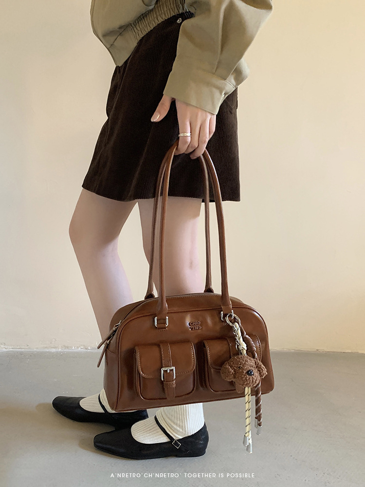 Nanfeng Chio2nd 삼바 라운지 베개 가방 여성 가을 복고풍 보스턴 가방 통근 휴대용 어깨 가방스토어 가기