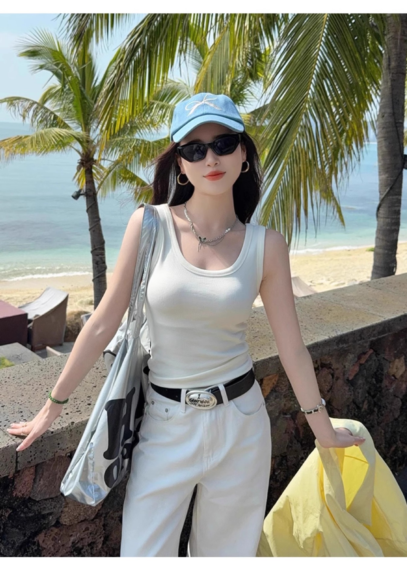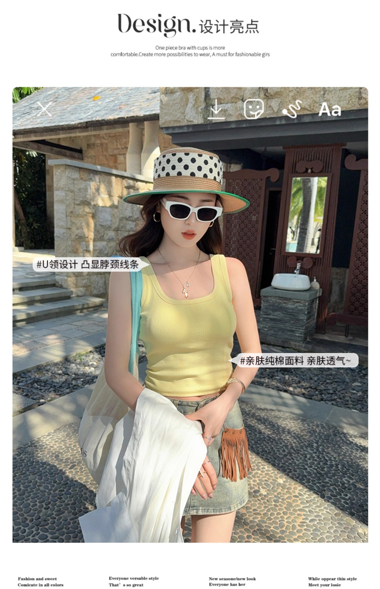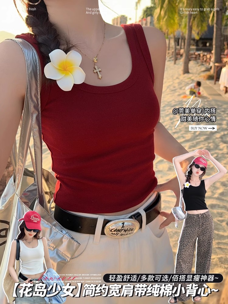 여성용 캐미솔 2025 여름 신상 슬림핏 민소매 이너웨어 다용도 베스트 와이드 숄더 스트랩 탑 아우터웨어