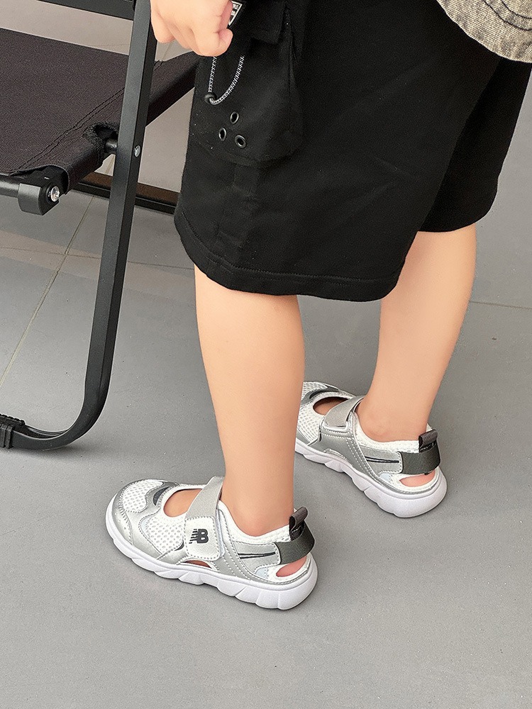 2025夏季儿童包头凉鞋真皮网面透气轻便运动中大童软底防滑框子鞋