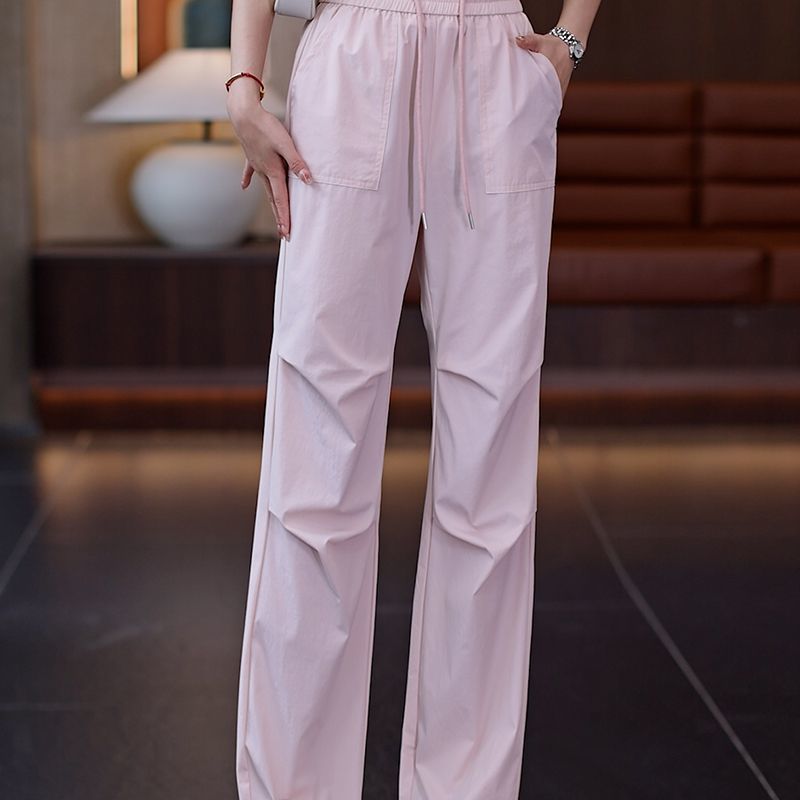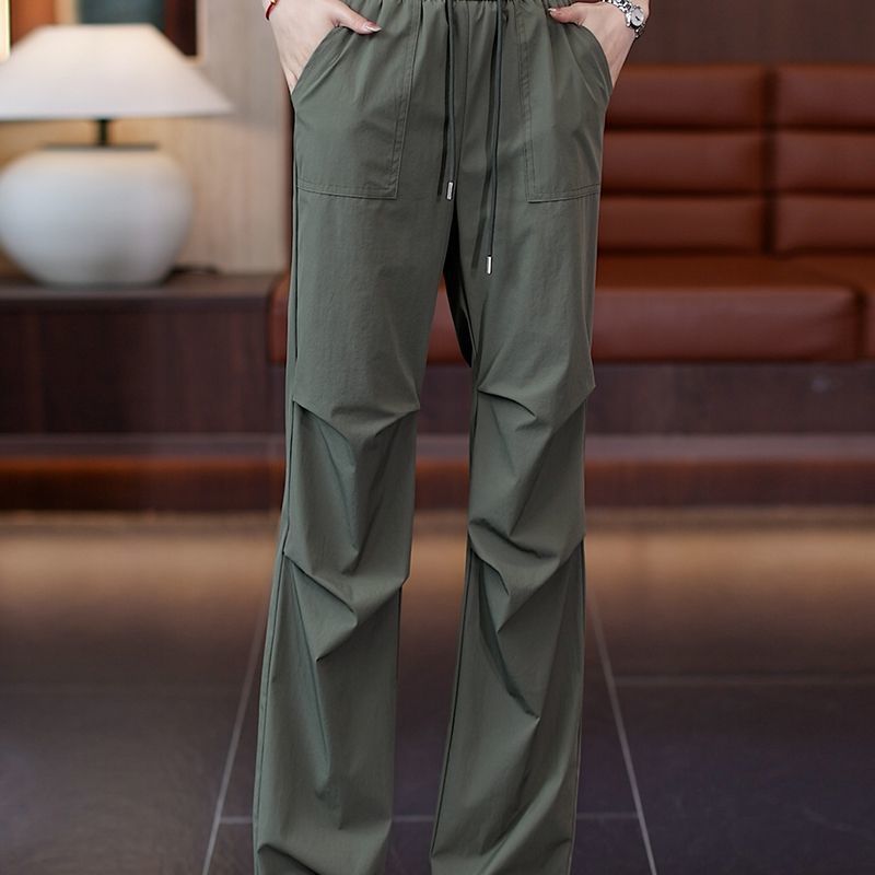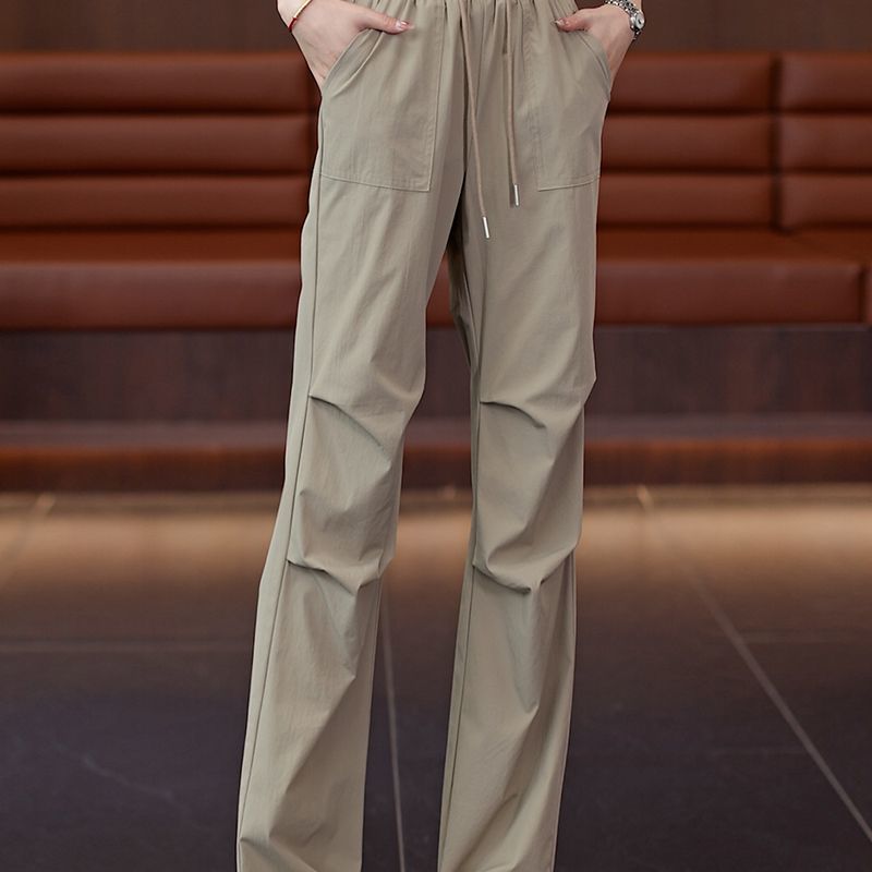 여성용 작업복 여름 얇은 2025 새로운 스타일 하이 웨이스트 슬리밍 속건 스포츠 등산 좁은 버전 느슨한 와이드 레그 팬츠