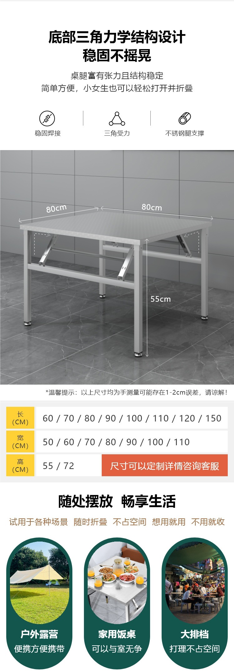 야시장 스테인레스 접이식 테이블 휴대용 바베큐 테이블 야외 매점 상업용 야시장 간이 식탁 작은 사각형 테이블