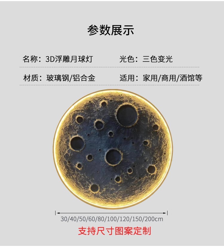 3D 3 차원 구호 야외 달 벽 램프 분위기 장식 선술집 배경 벽 램프 교수형 석고 달 벽 그림 램프
