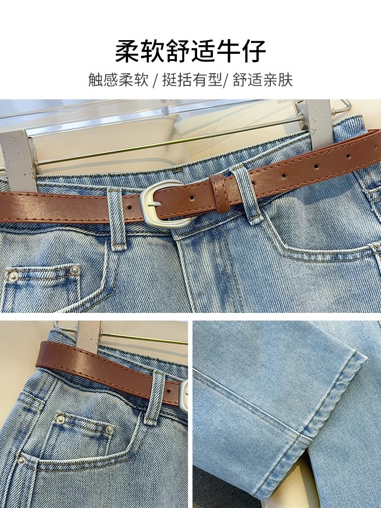 밝은 색 넓은 다리 청바지 여성의 봄과 여름 2025 새로운 복고풍 핫 팬츠 느슨한 좁은 직선 바지스토어 가기