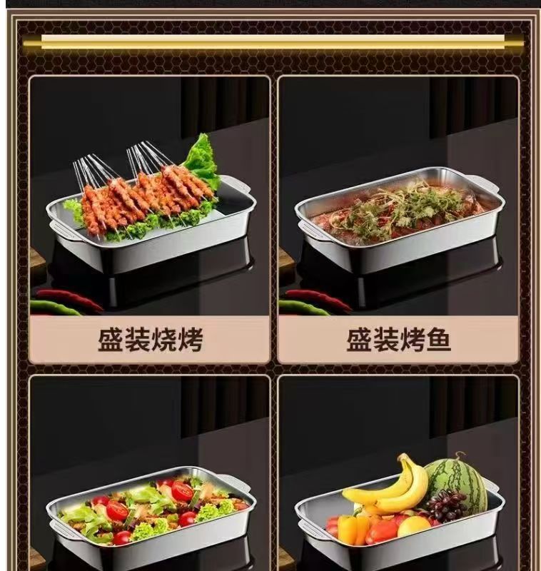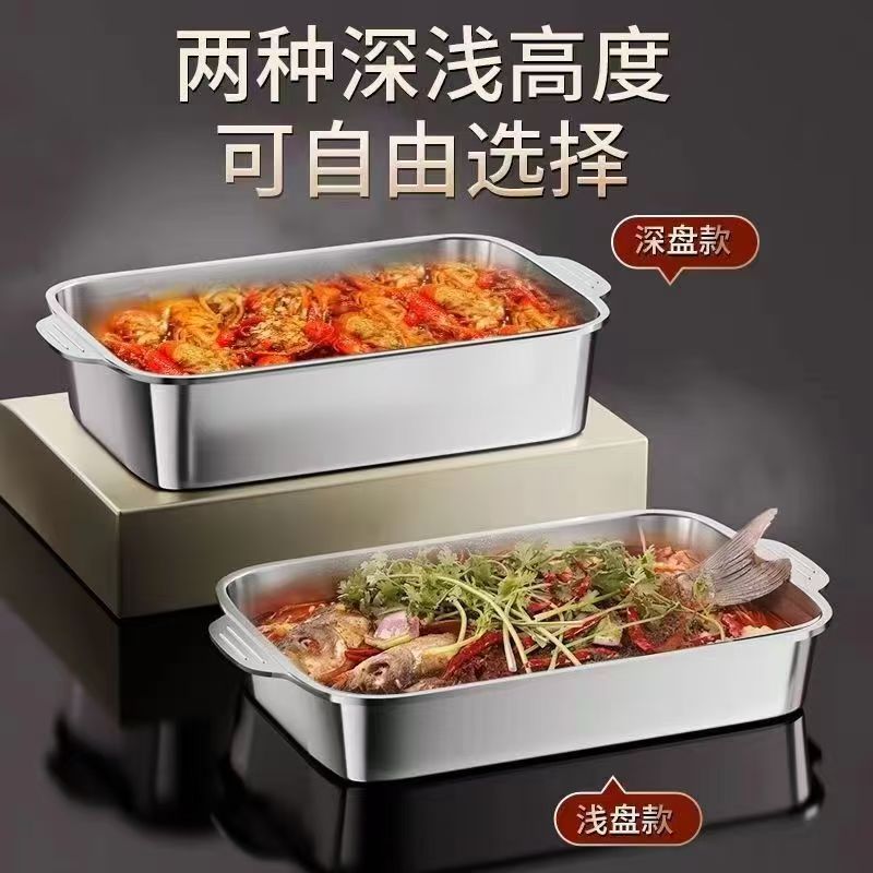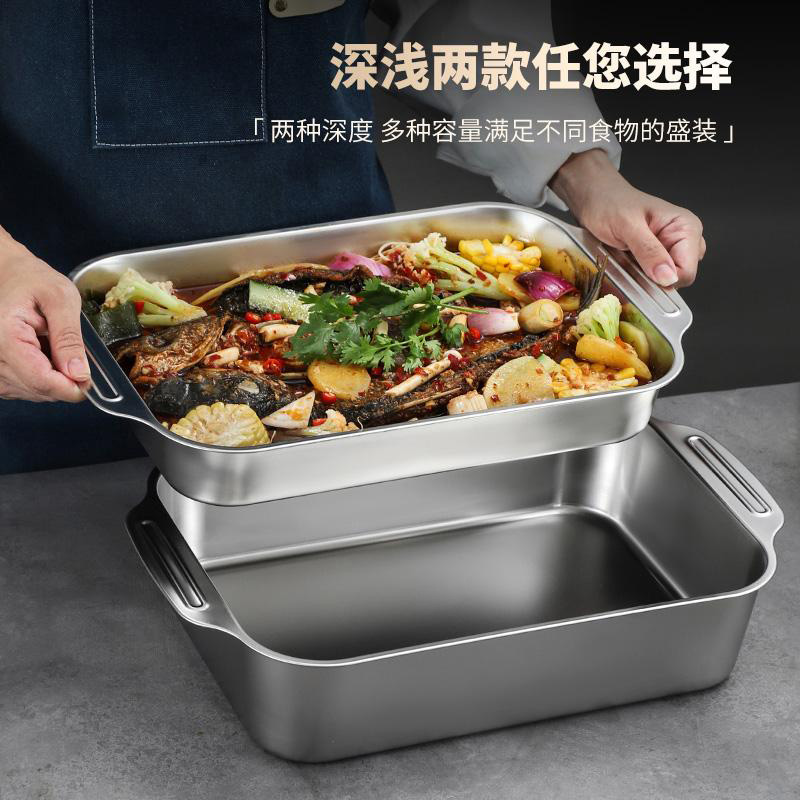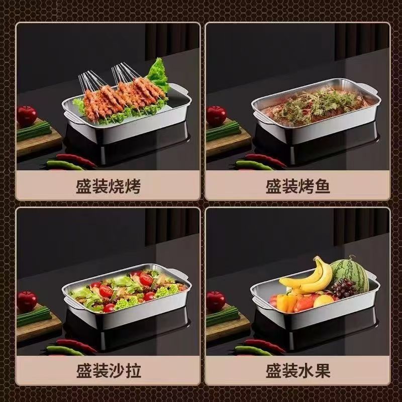 스테인레스 스틸 생선 구이 접시 건강한 식품 등급 사각형 접시 두꺼운 직사각형 트레이 가재 접시 해산물 대형 깊은 접시스토어 가기