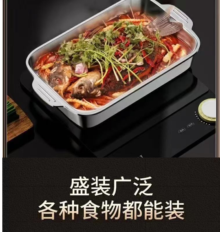 스테인레스 스틸 생선 구이 접시 건강한 식품 등급 사각형 접시 두꺼운 직사각형 트레이 가재 접시 해산물 대형 깊은 접시