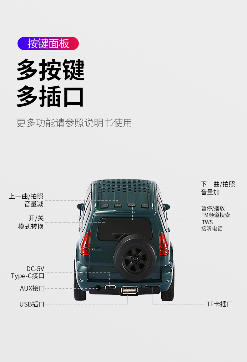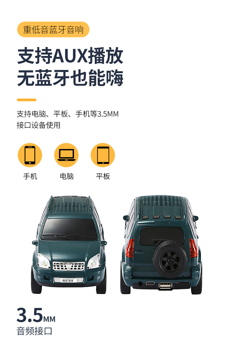 跨境蓝牙音箱吉普汽车模型摆件多功能超重低音炮FM收音TF插卡音响