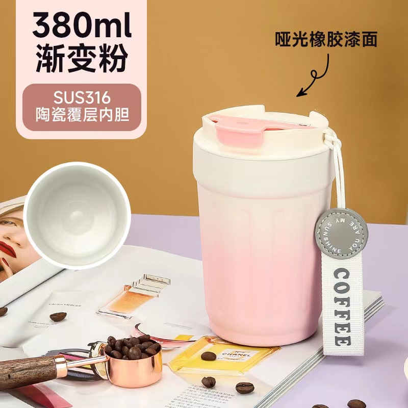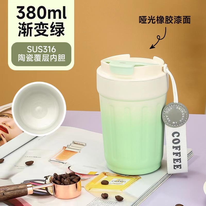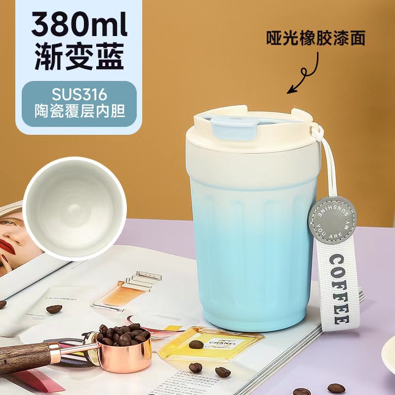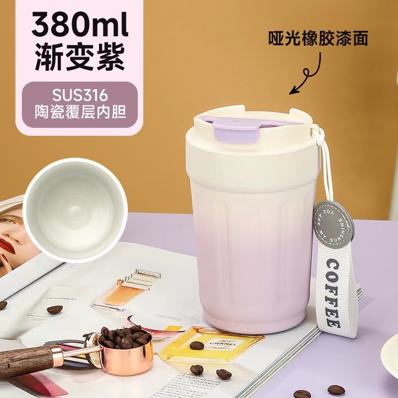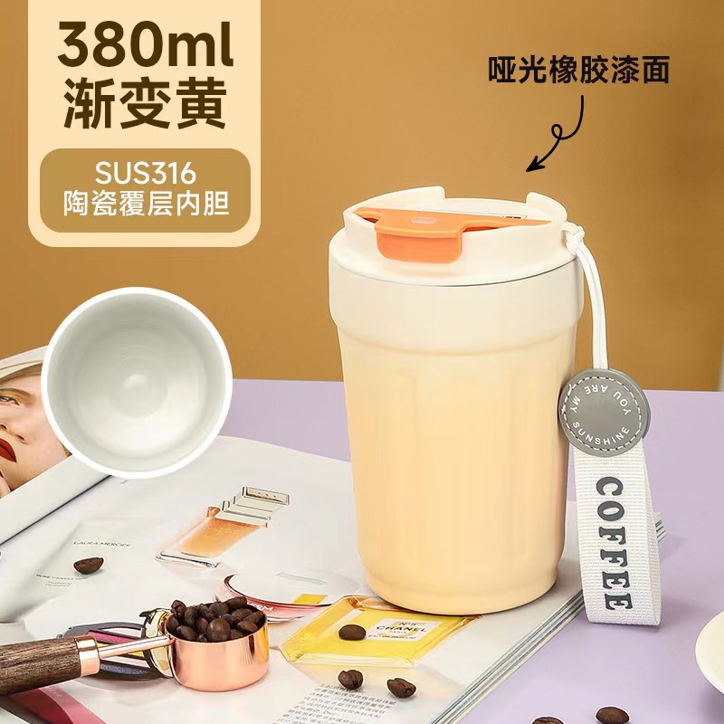 새로운 인기 판매 세라믹 보온병 컵, 솔리드 컬러, 로프가 달린 세련된 커피 컵, 야외 휴대용, 간단하고 고급스러운 물컵
