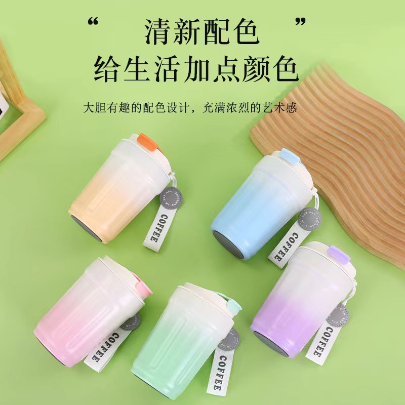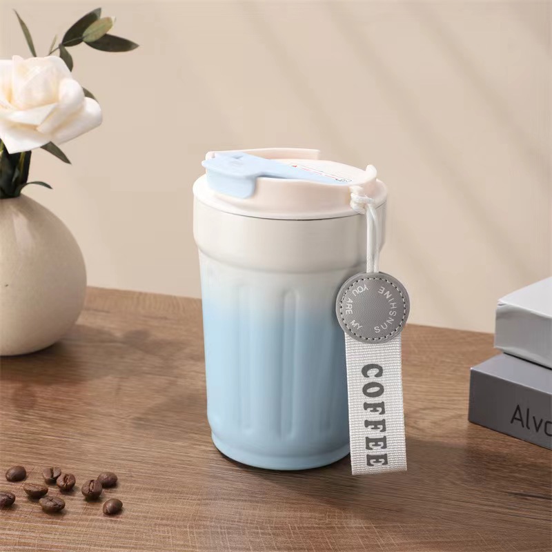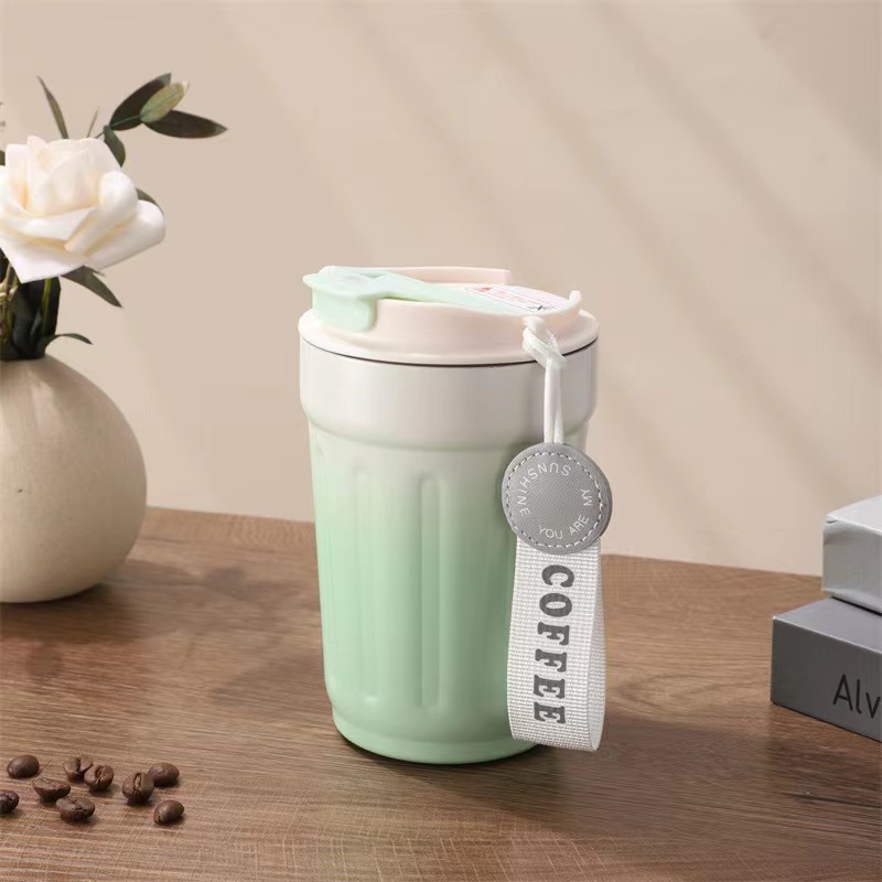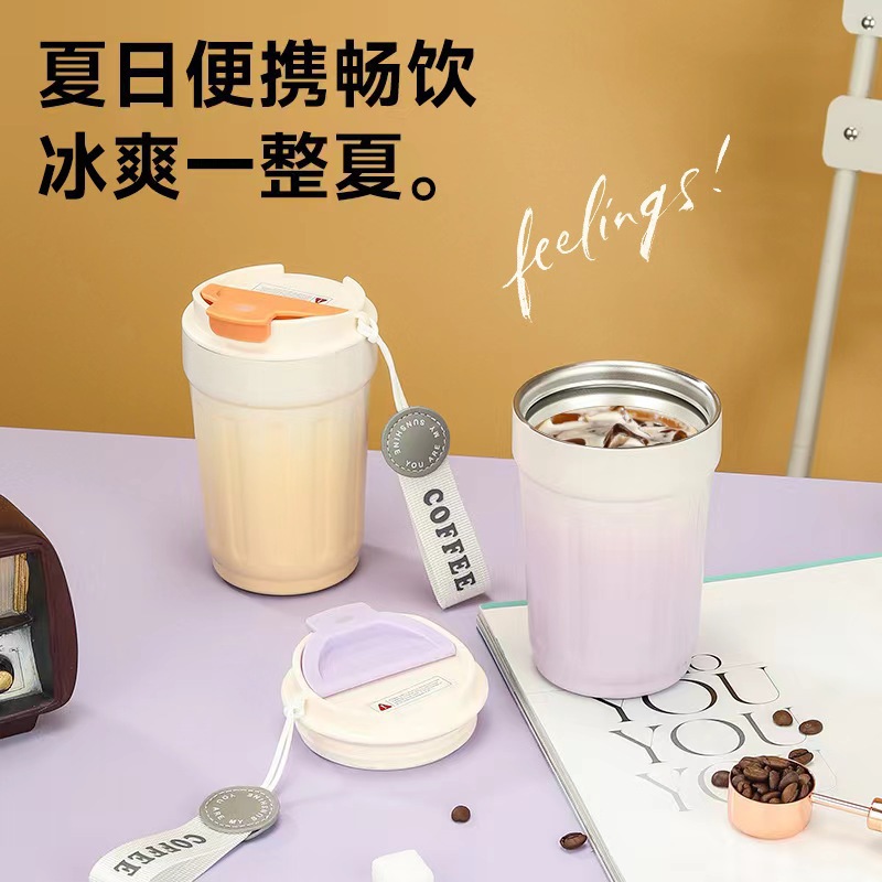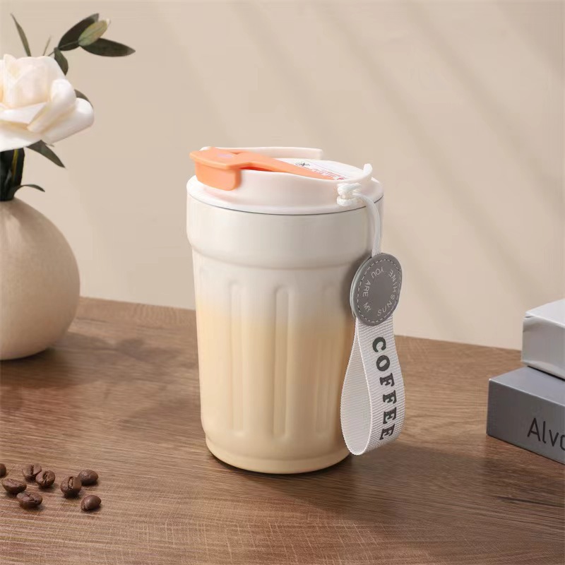 새로운 인기 판매 세라믹 보온병 컵, 솔리드 컬러, 로프가 달린 세련된 커피 컵, 야외 휴대용, 간단하고 고급스러운 물컵